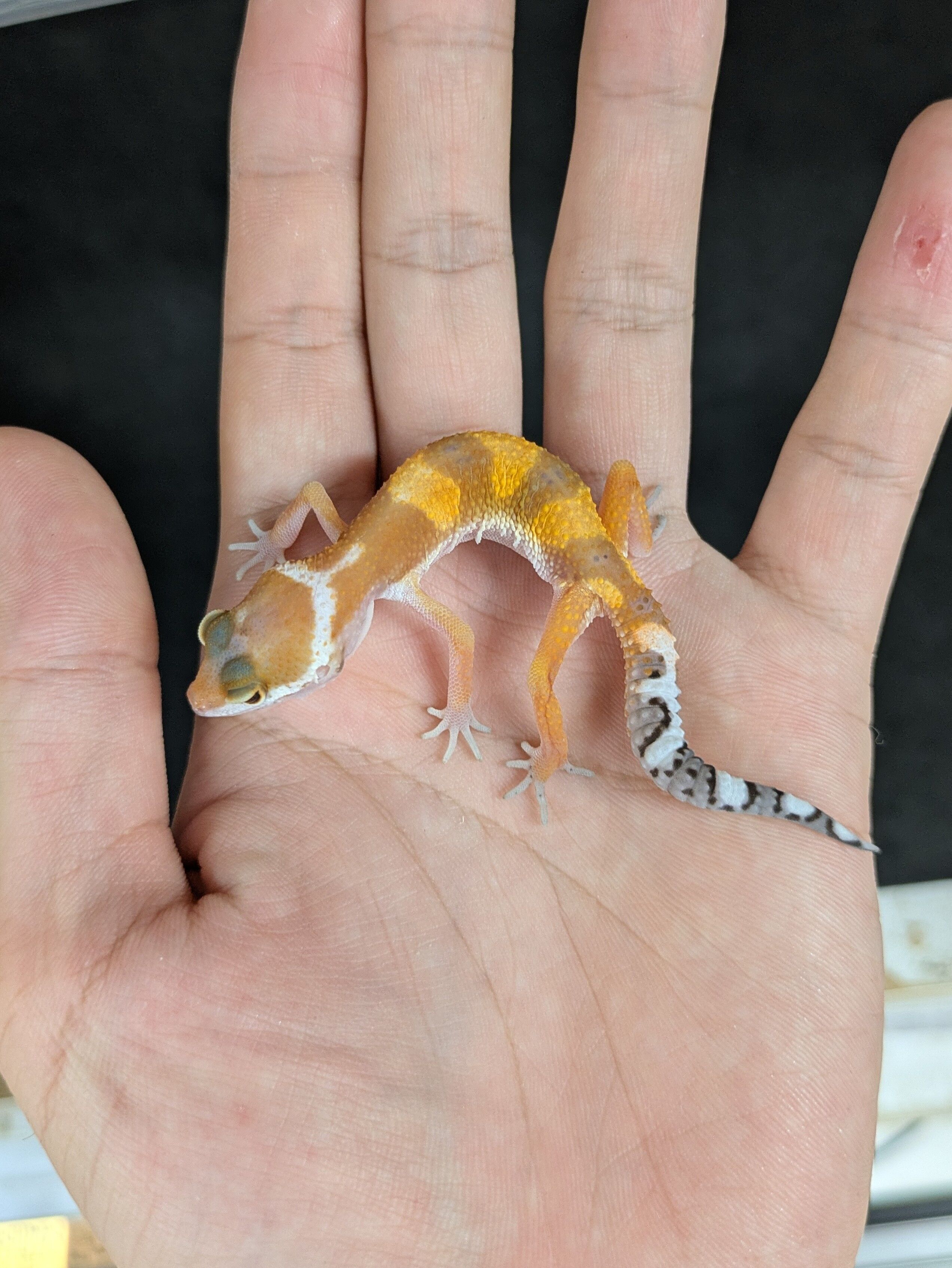 ハイポタンジェリンはオレンジの体色と黒い斑点が出ないというモルフです。この個体は体から綺麗に黒い斑点が消えています。