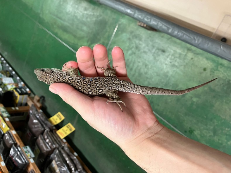 その名の通り宝石のように輝くブルーとグリーンが美しいホウセキカナヘビです。