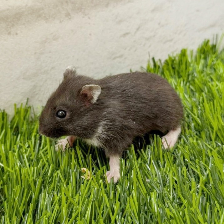 リアルブラックのジャンガリアンハムスターちゃんは、つやのある美しい毛色と、ころんとしたフォルムがとても魅力的💕
