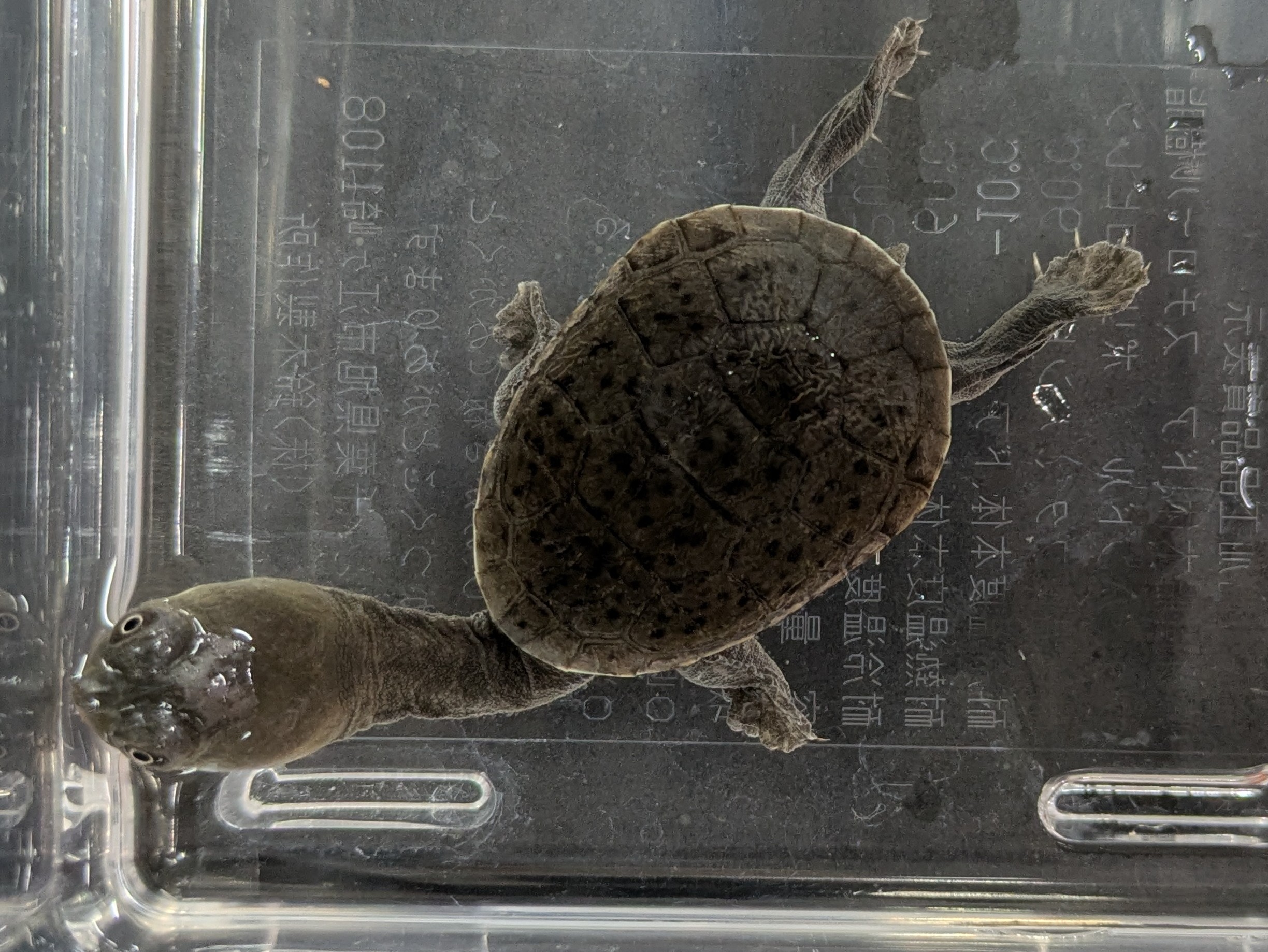 独特な長い首と、重厚感のある甲羅が目を引くジーベンロックナガクビガメ。
