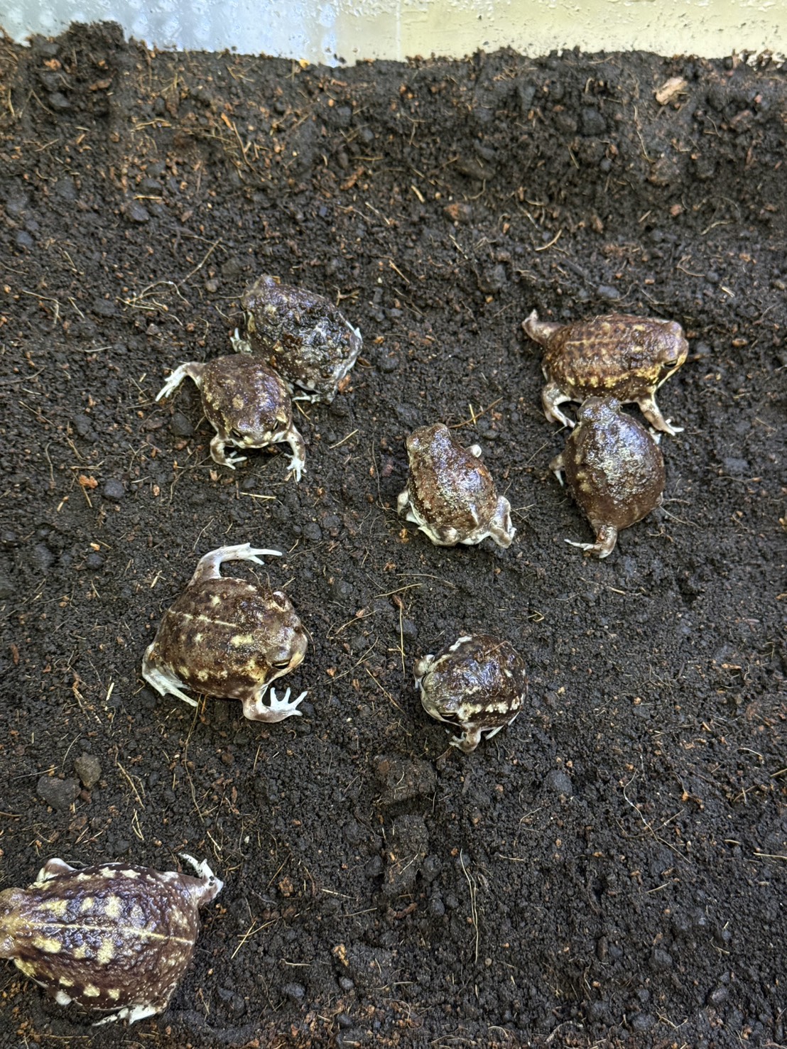 丸みのある体型とずんぐりしたシルエットが印象的で、地表にじっと構える姿に独特の愛嬌があります。派手な動きは少なく、物陰や床材の中で静かに過ごす時間が長いため、落ち着いた観察を楽しみたい方に向いたタイプです。環境やコンディションによって体色の濃淡が変化し、飼育下でも表情の違いを感じられる点が魅力です。