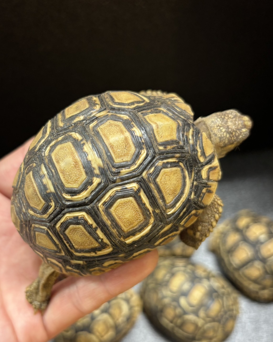 独特なヒョウ柄模様🦊が目を引く、リクガメ界の人気種です。