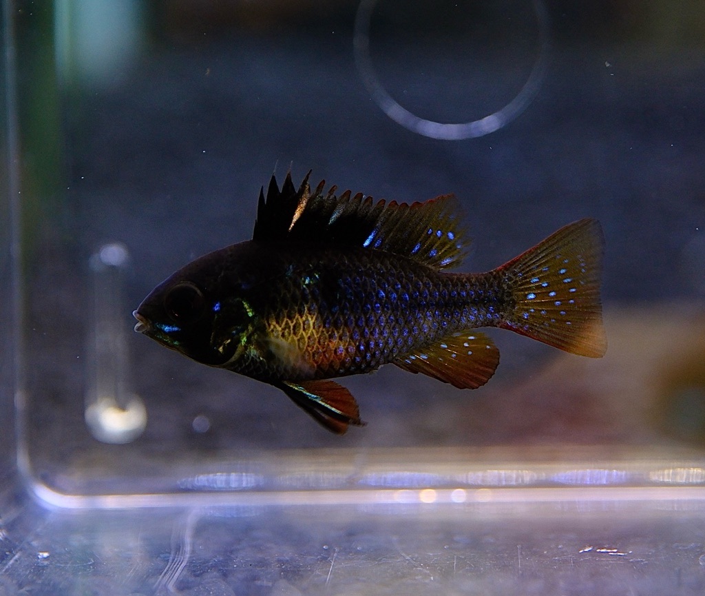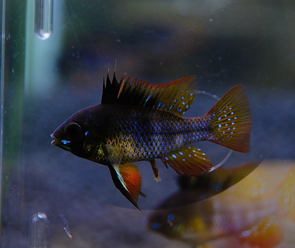 本種の特徴である黒地に映える極彩色がしっかりと現れた高品質個体たちで黒系ラミレジィ最高峰種ダークナイトの前身となった品種という説得力は抜群。