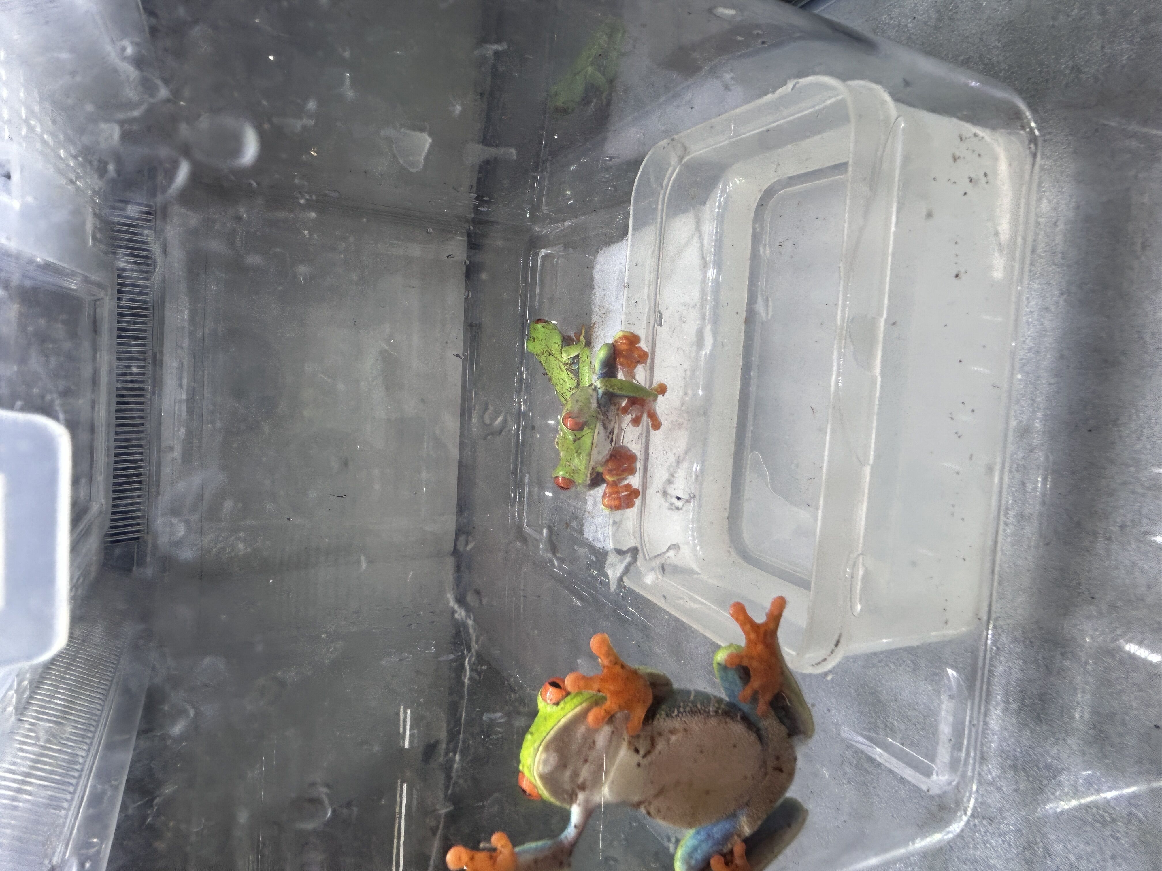 長い手足に、脇腹に入った青い筋と名前にもある赤い目で存在感バツグンです👀