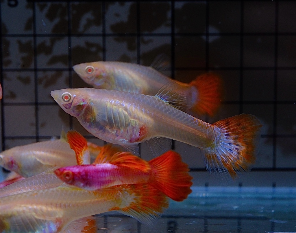 全身に赤紫の強い発色が乗る、国産ブリードの高グレード個体が再入荷!特にオスはボディから尾鰭にかけて赤みが濃く、RREA(リアルレッドアイアルビノ)特有の透け感と相まって、まるで水中に光を落としたような美しさを放ちます。