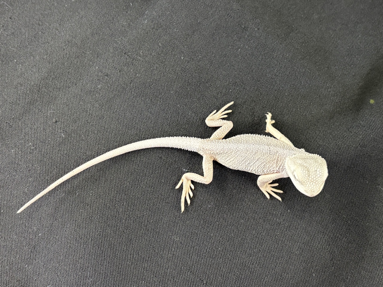 無駄のないシルエットに、淡く透き通るようなホワイトボディが映えるフトアゴヒゲトカゲ ゼロ(ハイポゼロ、ハイポゼロレザー)。全長約12cm±、2026台湾CBの個体です。