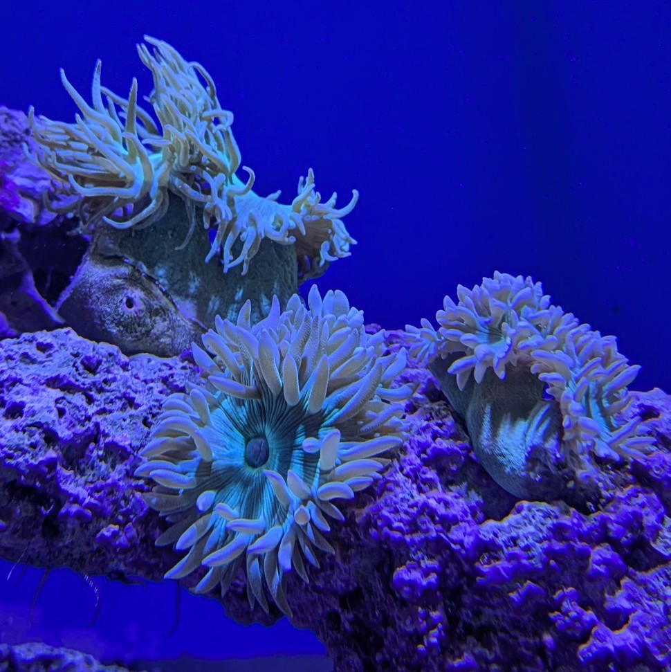 ふわりと広がるヒゲのようなポリプ。 水流に揺れる姿は、まるで水中に咲くネオンフラワー。