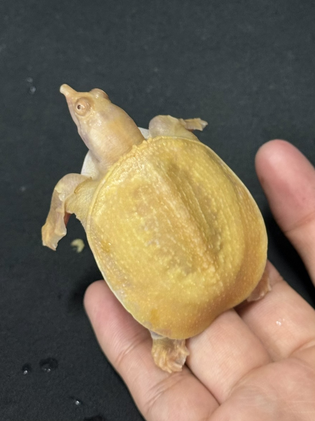 透き通るような淡い体色が印象的なアルビノシナスッポン。通常個体とは異なる白からクリーム色の体色に、赤みを帯びた目が映える特別感のある存在です。独特のやわらかなフォルムと、砂に潜る仕草はスッポンならではの魅力といえます。
