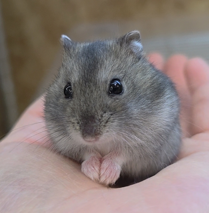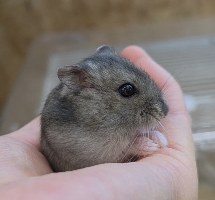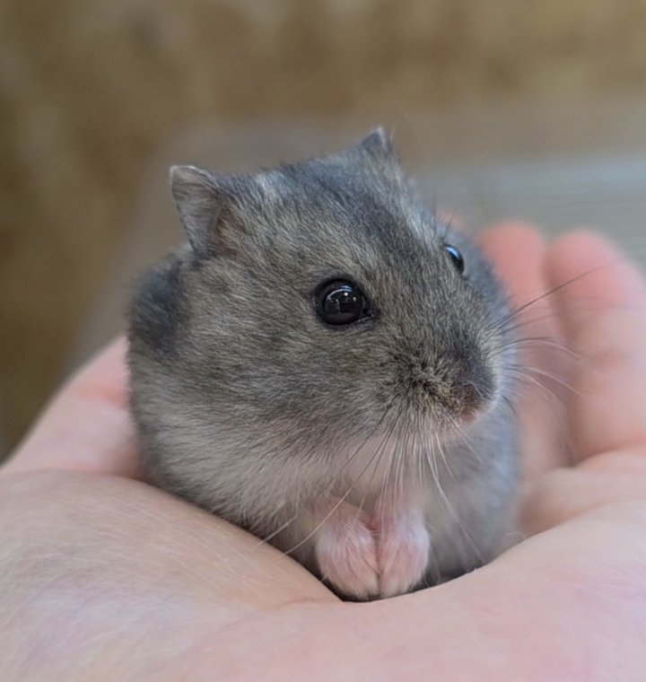 やわらかなグレーの毛並みと、まんまるなお顔が愛らしいジャンガリアンハムスター(ノーマル)です🐾
