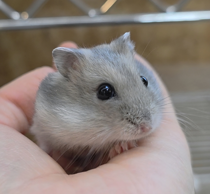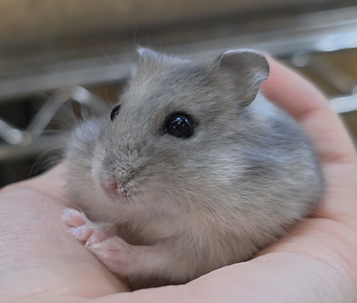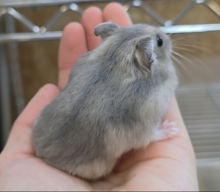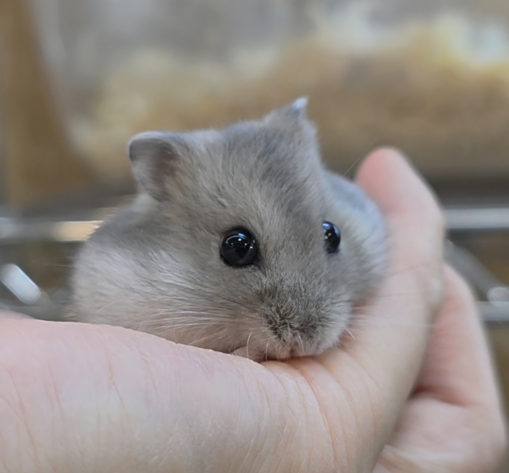 ほんのり青みを帯びたグレーの毛色が美しいジャンガリアンハムスター(ブルーサファイア)です🐾