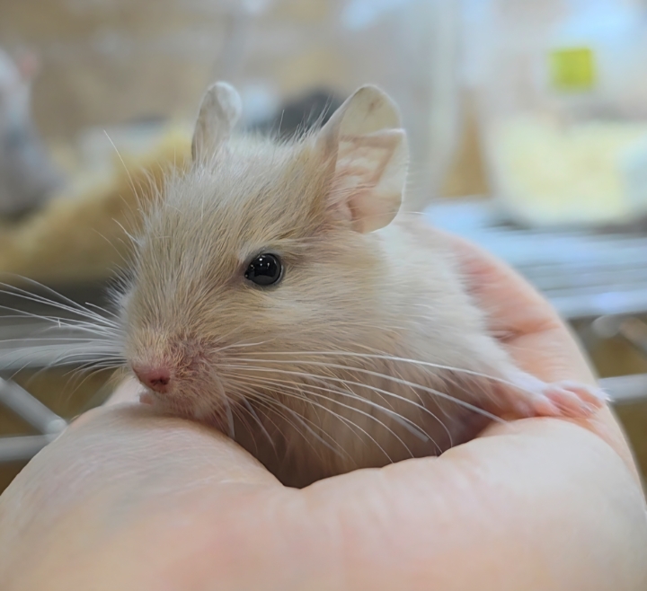 やさしいクリームイエローの被毛が魅力のデグー(イエロー)です🐾