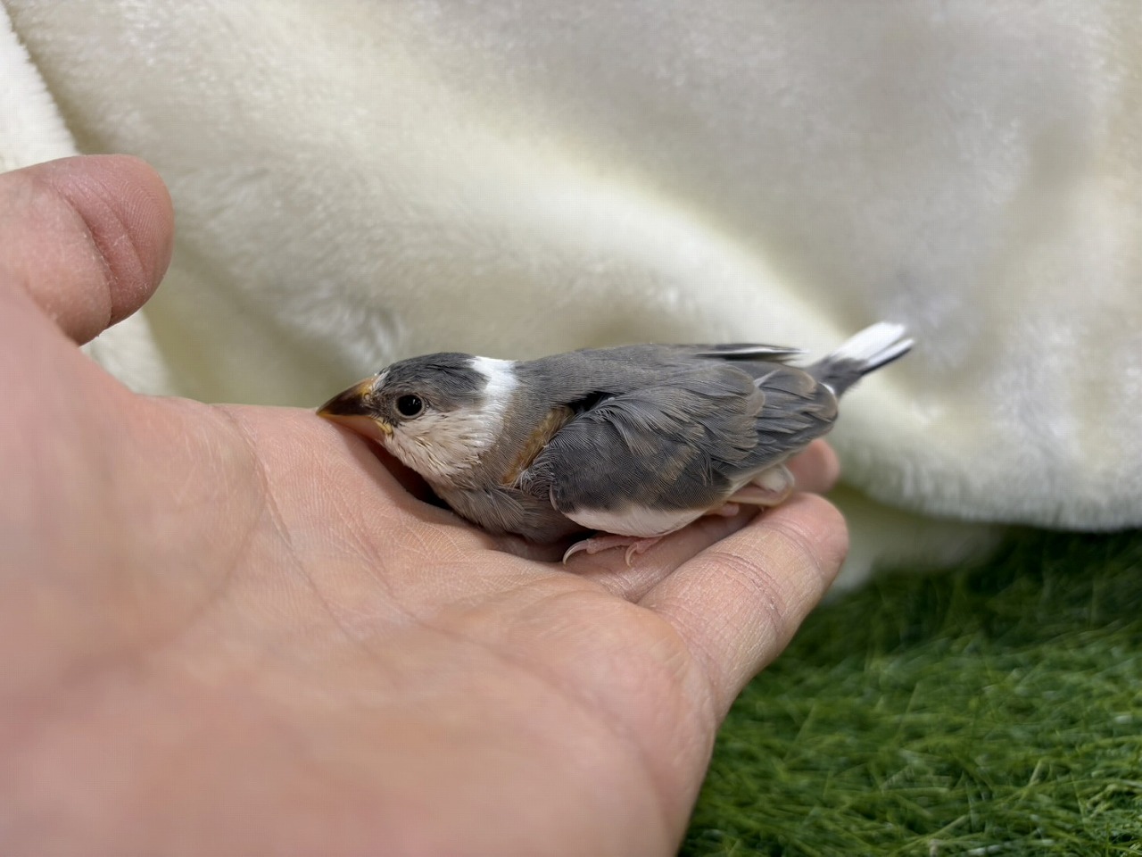 手のひらにすっぽりおさまる、桜文鳥の雛ちゃん。やわらかい羽色とつぶらな瞳がとても愛らしく、見つめ返してくれるだけで心がふっとほどけるような、そんな癒やしをくれる子です❤️