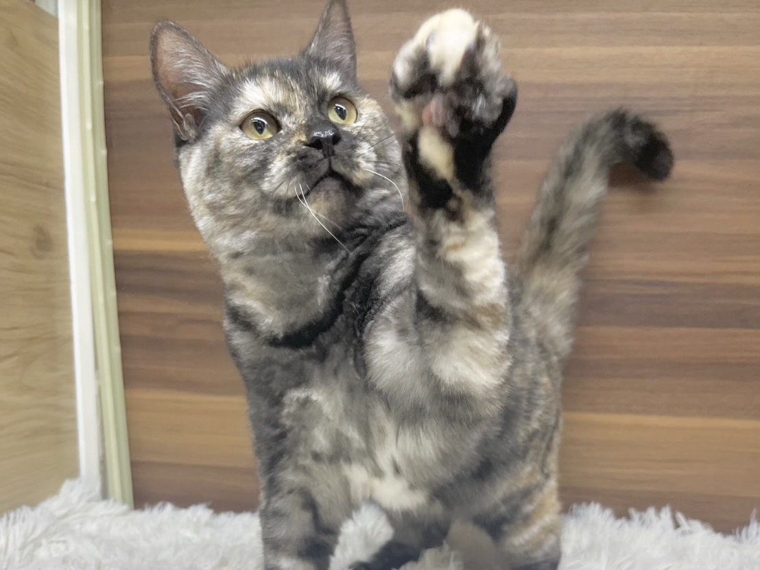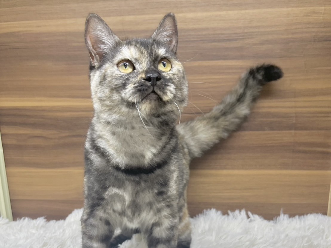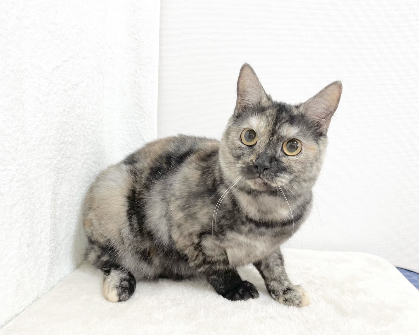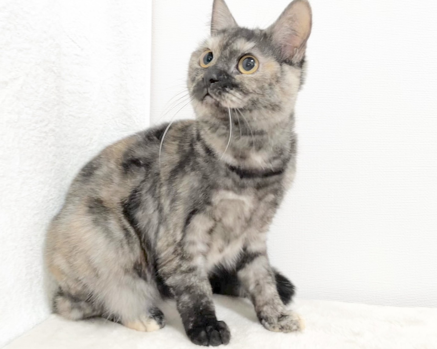 美しいトーティシェル(サビ柄)の毛色が印象的なマンチカンの女の子です😻💕