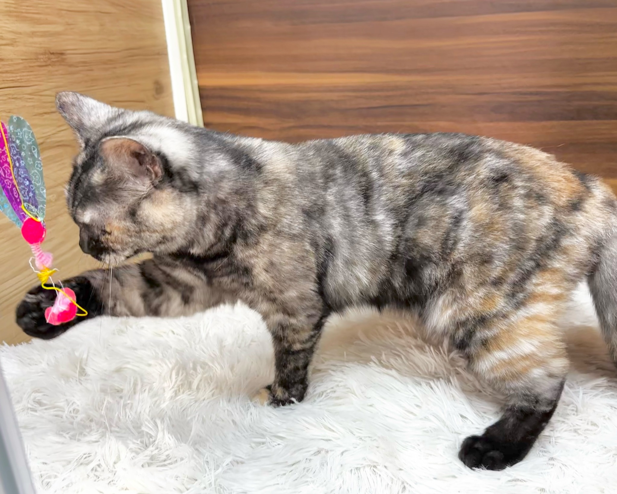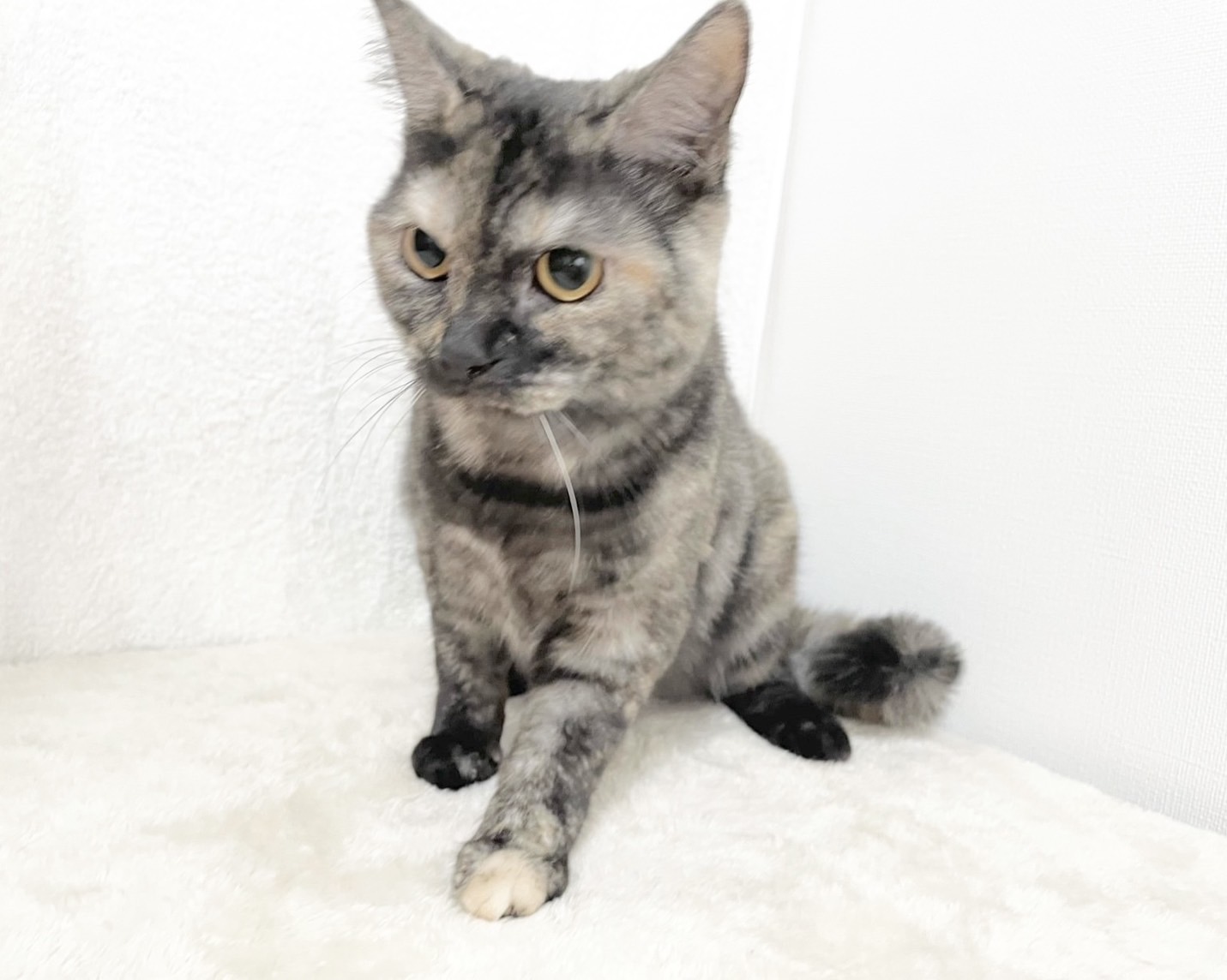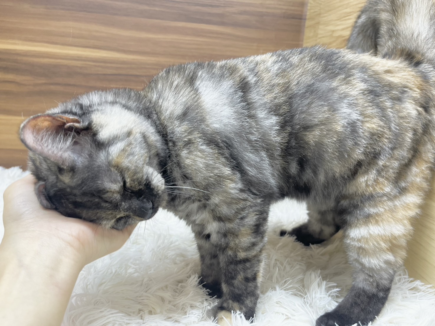 美しいトーティシェル(サビ柄)の毛色が印象的なマンチカンの女の子です😻💕