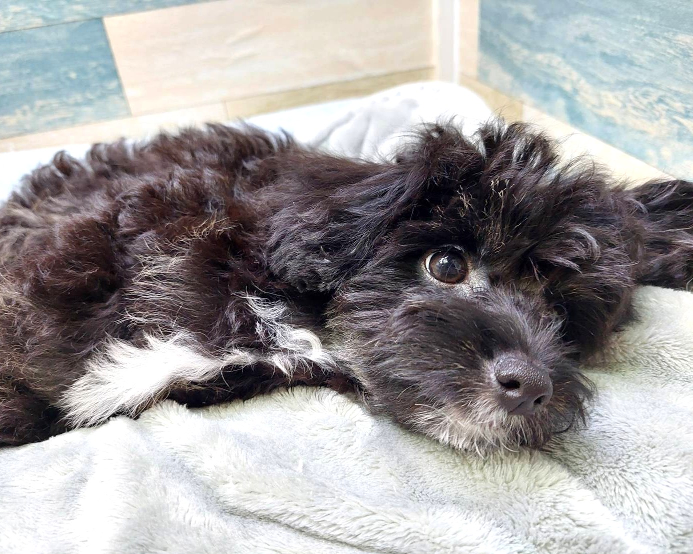 やさしいブラック&ホワイトの被毛がとっても可愛いチワプーくんです🐶💕