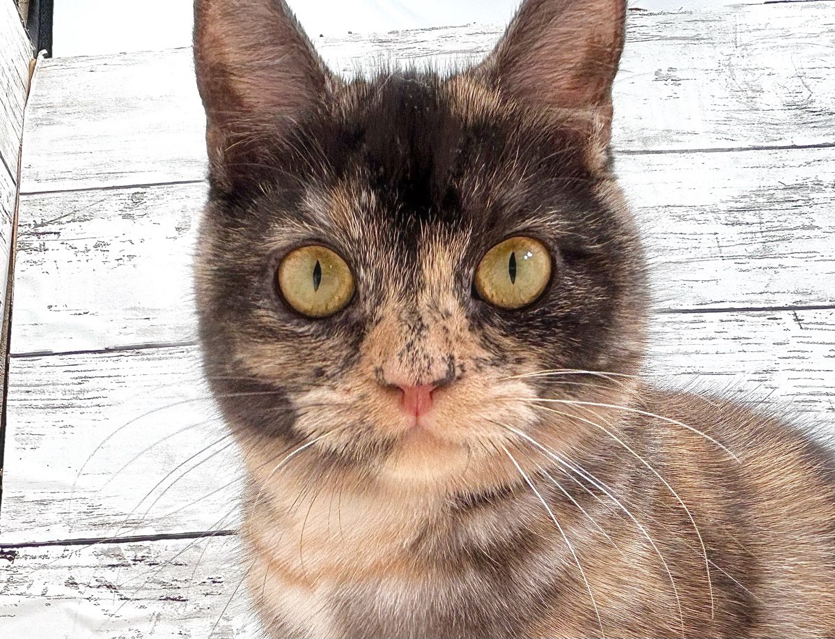 個性的な毛色の模様とまんまるなお顔がとってもキュート💕