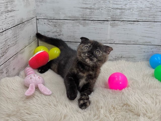 個性的なトーティ柄がとっても魅力的な、スコティッシュフォールドの女の子です❤️