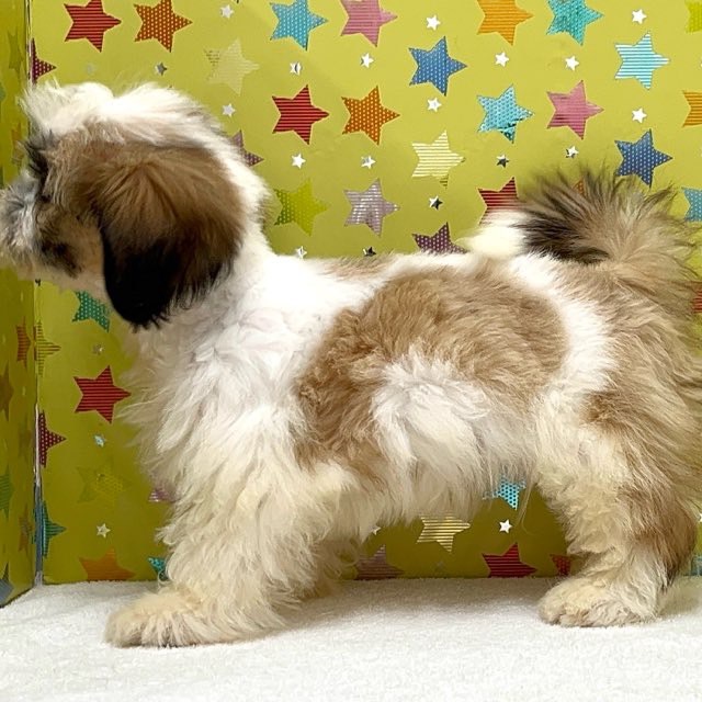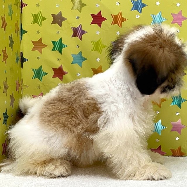 ふわふわの毛並みと優しいカラーが魅力のシーズーの男の子です。