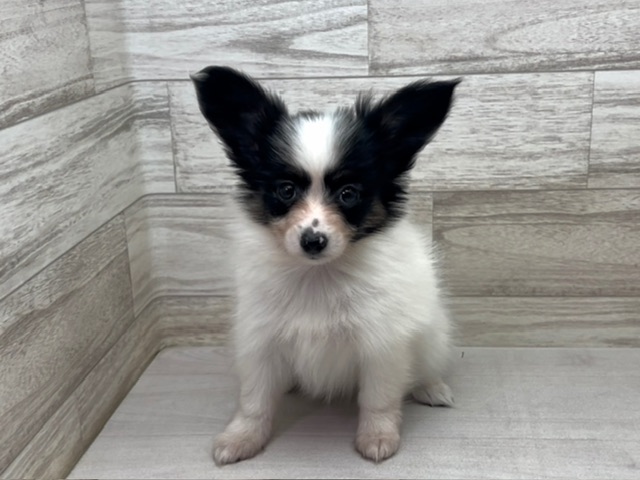愛らしい蝶々のような優雅な耳が印象的な、トライカラーのパピヨンちゃん。トライカラーならではの美しい毛色のコントラストと、ふんわり柔らかな被毛がまぶしい魅力です。明るく清楚な雰囲気が漂うこのパピヨンちゃんは、ご家庭の癒やしになること間違いなし。優雅で可憐な存在感が、日常のさりげない瞬間を一層豊かに演出してくれます。ぜひその小さな仕草や柔らかなまなざしに、心奪われてください。