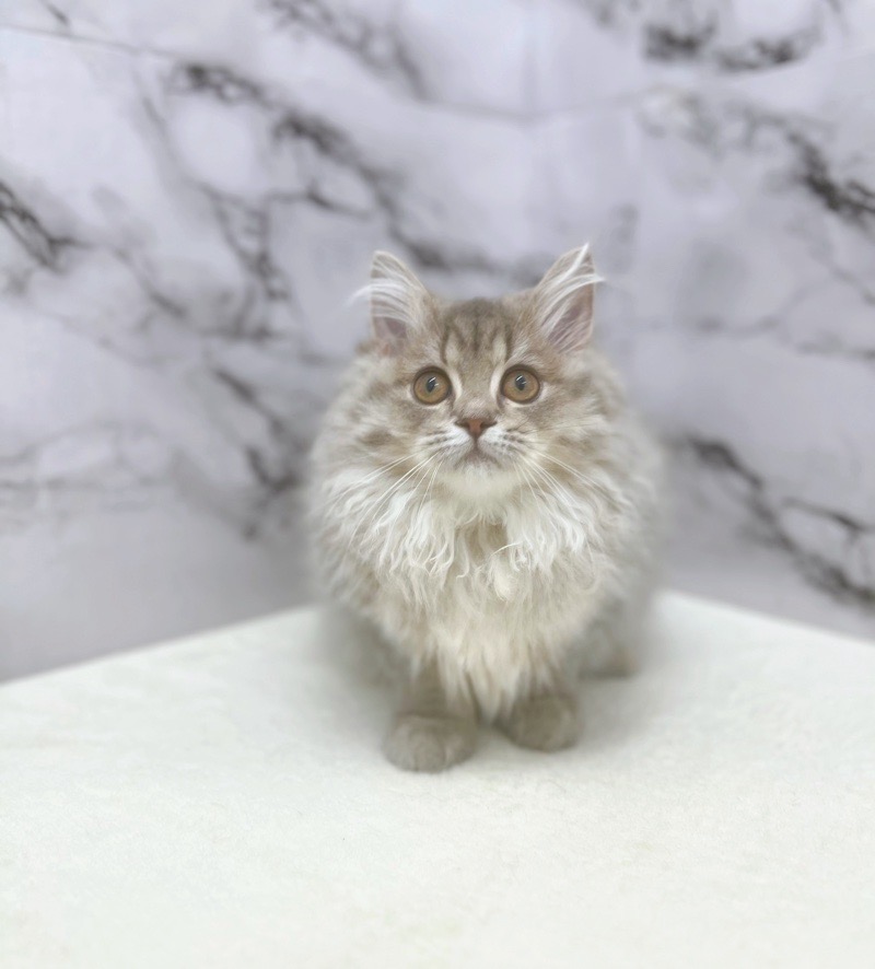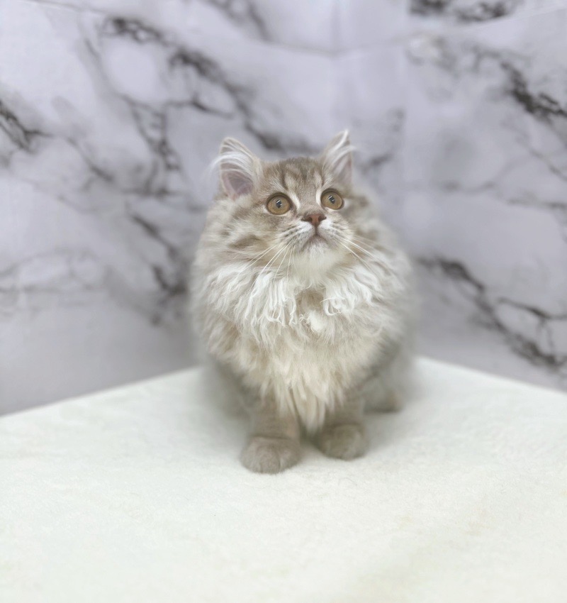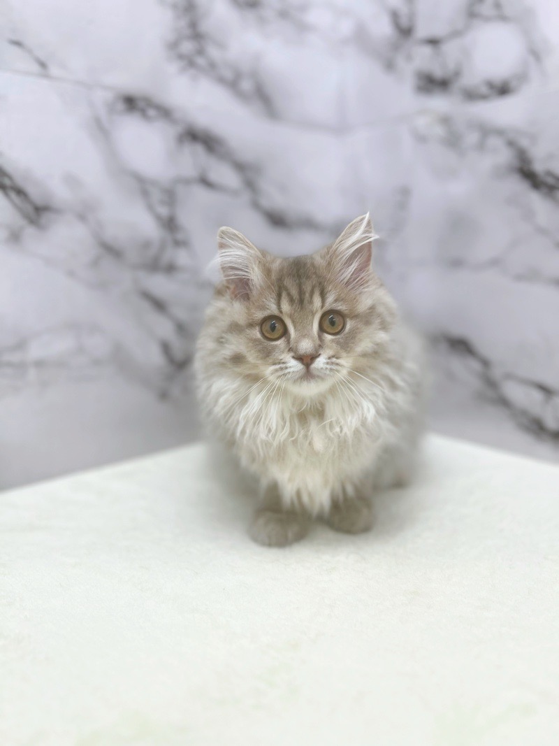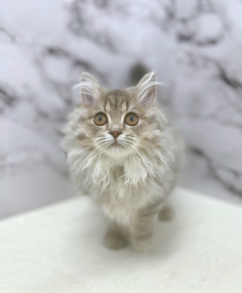 薄く上品にブレンドされたブルーとグレーのタビー柄に、ホワイトのアクセントがまるでアートのような美しさを放つラガマフィンの女の子♡