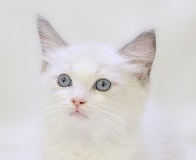 クリスタルブルーの瞳とピンクのお鼻がチャームポイント。見つめ返すだけでキュン度MAX。