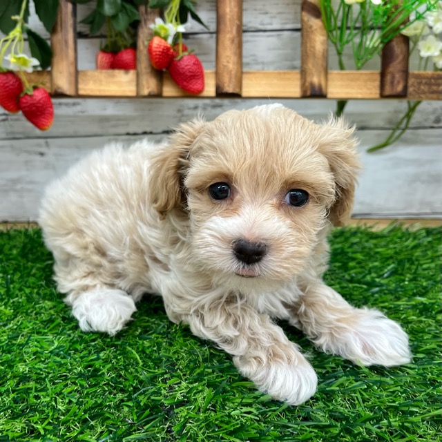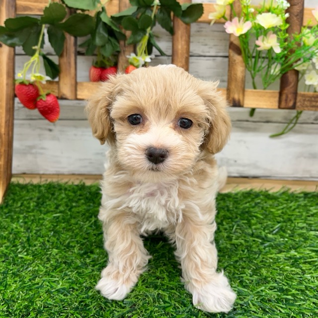 くりんとしたおめめに、まあるいお顔。やわらかなクリーム色のふわくる毛並みがたまらないマルプーちゃんです🐶❤️