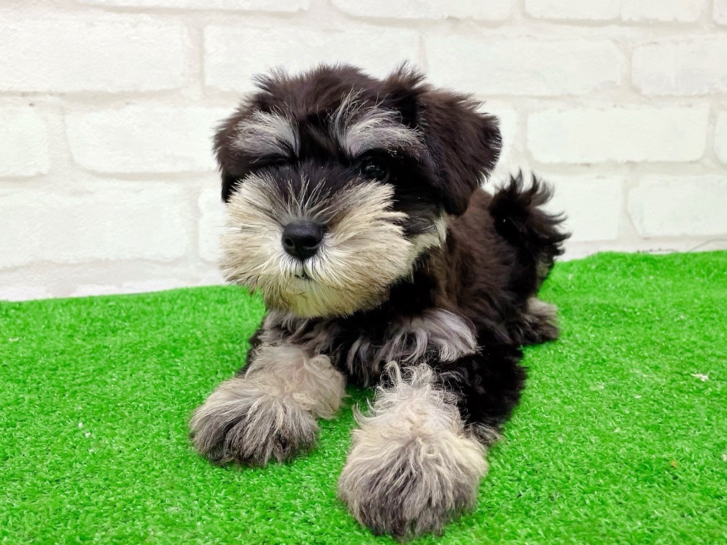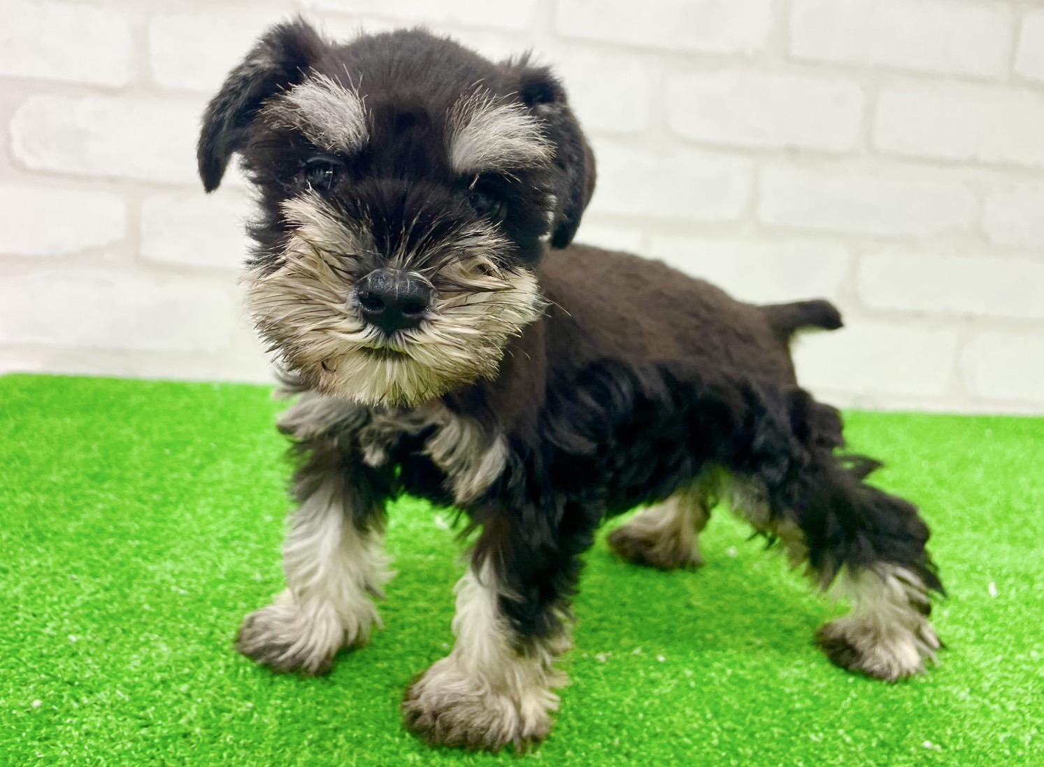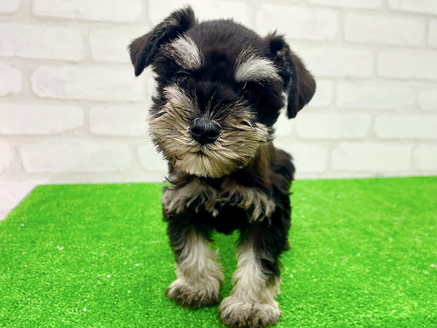 シュナウザーらしい賢さと好奇心をすでにのぞかせ、遊ぶのも人と触れ合うのも大好きな性格🍀