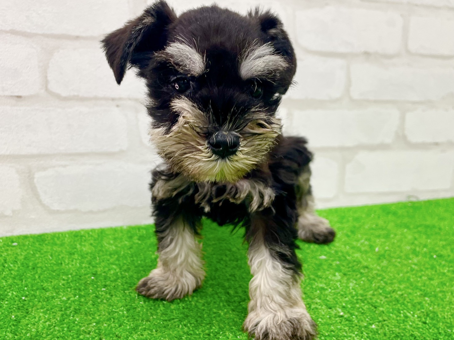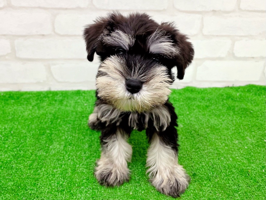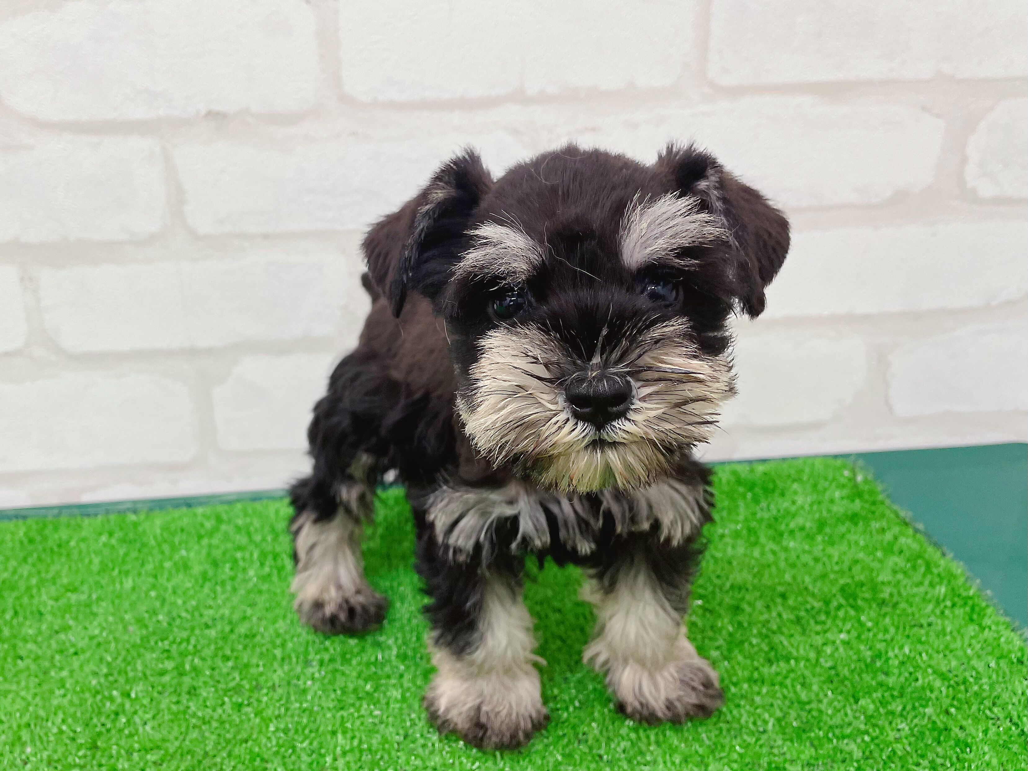 シュナウザーらしい賢さと好奇心をすでにのぞかせ、遊ぶのも人と触れ合うのも大好きな性格🍀