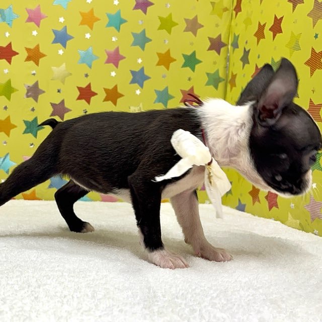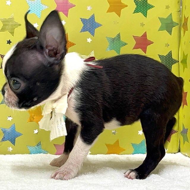 リボンが似合いすぎるキュートなボストンテリアの女の子です💍🐾