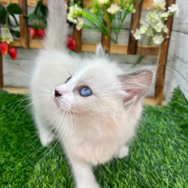 ふわふわの白い毛並みと、ほんのりグレーのポイントカラーがとても上品で、見ているだけでうっとりしてしまいます💕