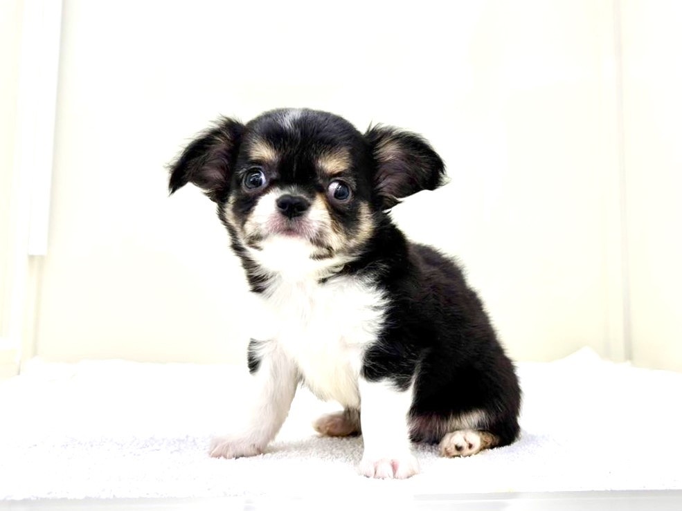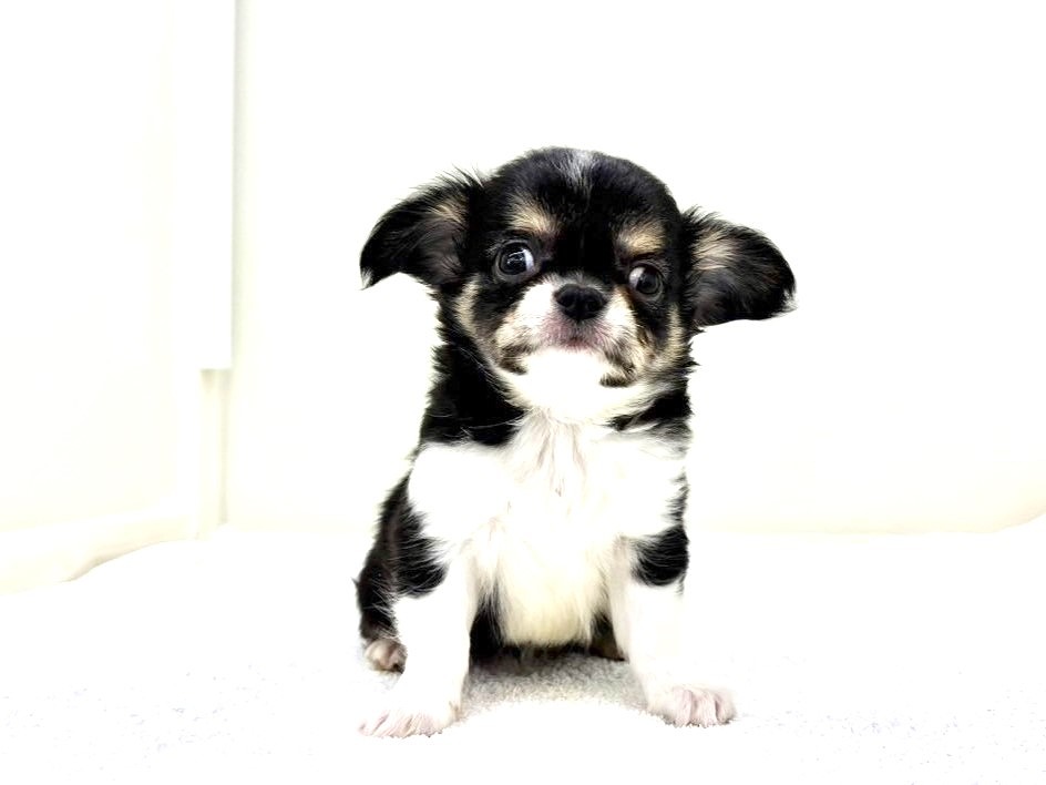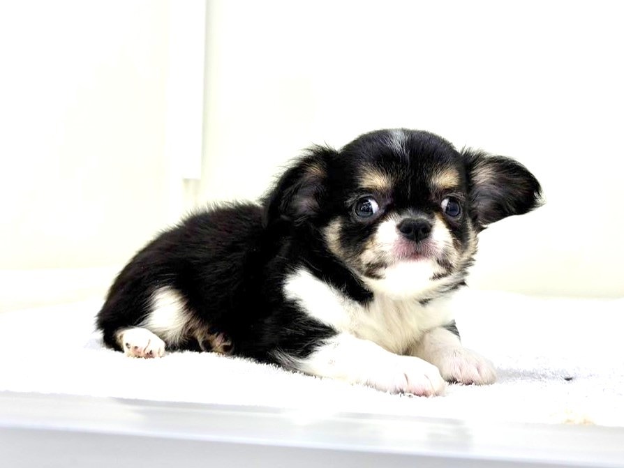 トライカラーの毛並みが凛々しくも愛らしいロングコートチワワの男の子が仲間入りしました♡