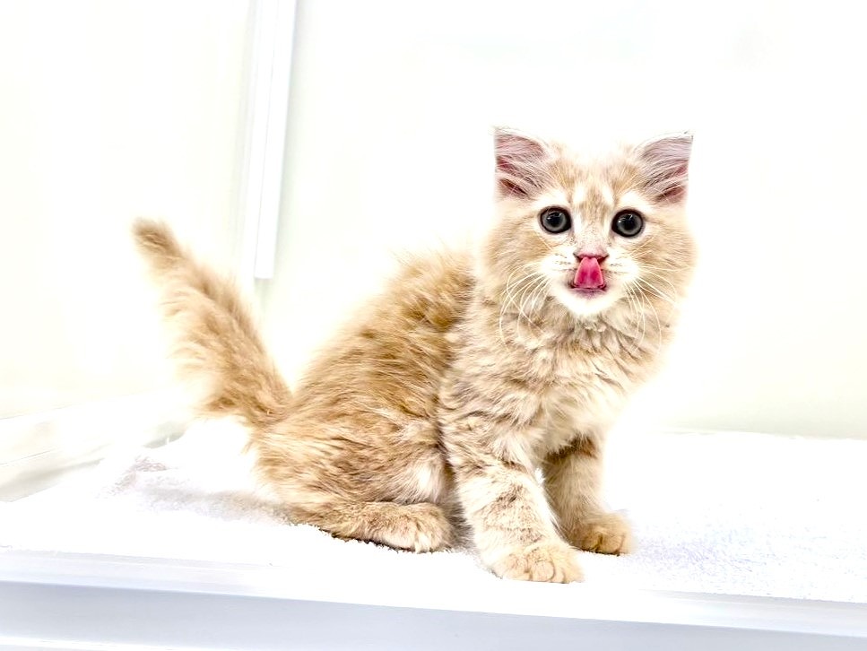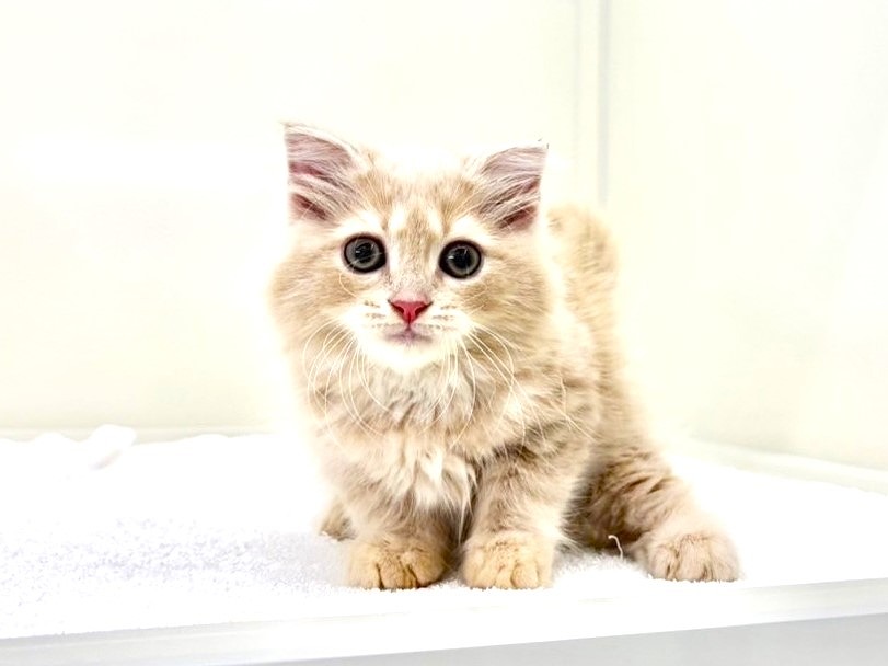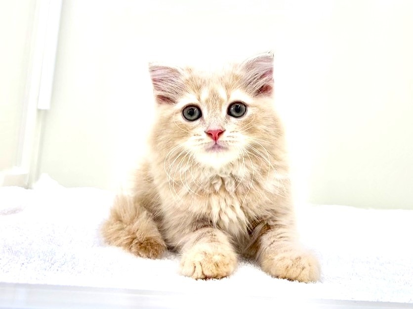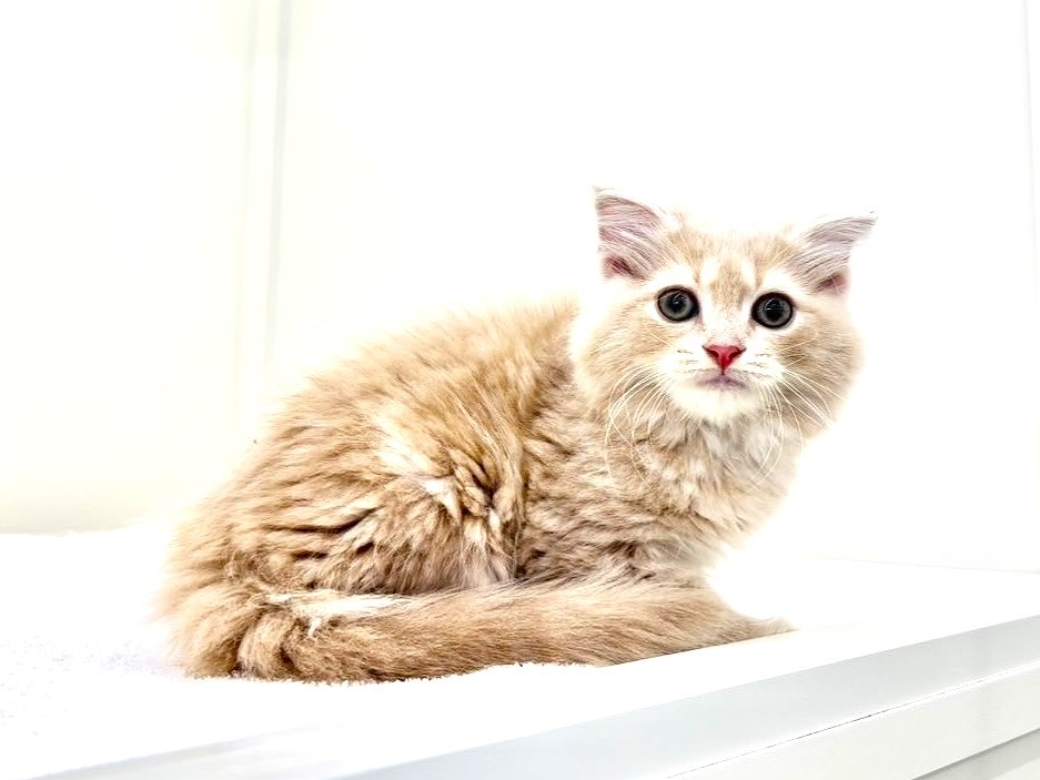 淡いクリーム色の毛並みにところどころ混ざったホワイトがアクセントになっていて、まるでおとぎ話から飛び出してきたような愛らしさです(´꒳`)♡
