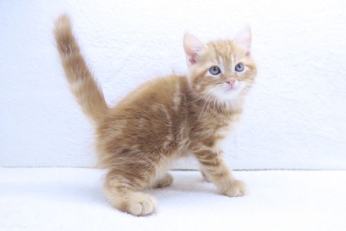 まんまるおめめとオレンジ色の毛並みがとってもキュートな、スコティッシュフォールドの男の子です