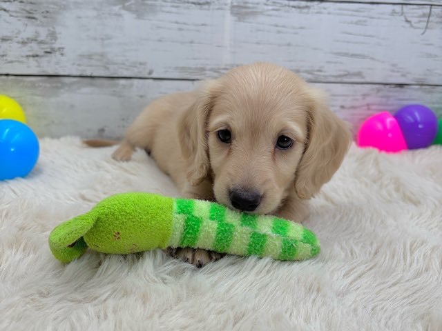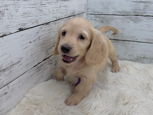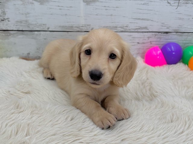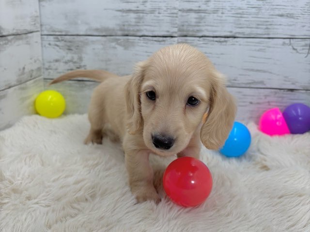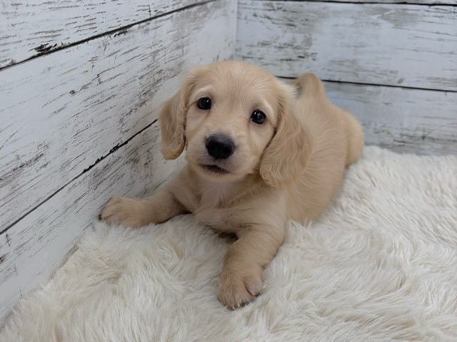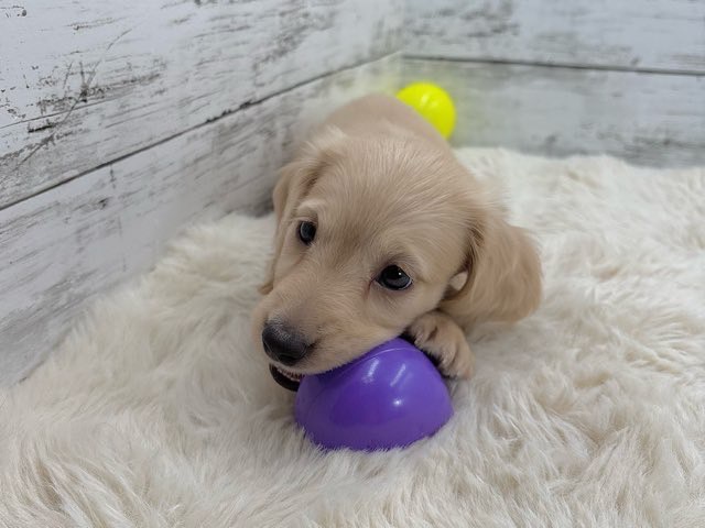 やさしいイエローの毛色が魅力的な、ミニチュアダックスの女の子です❤️