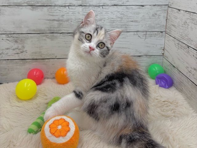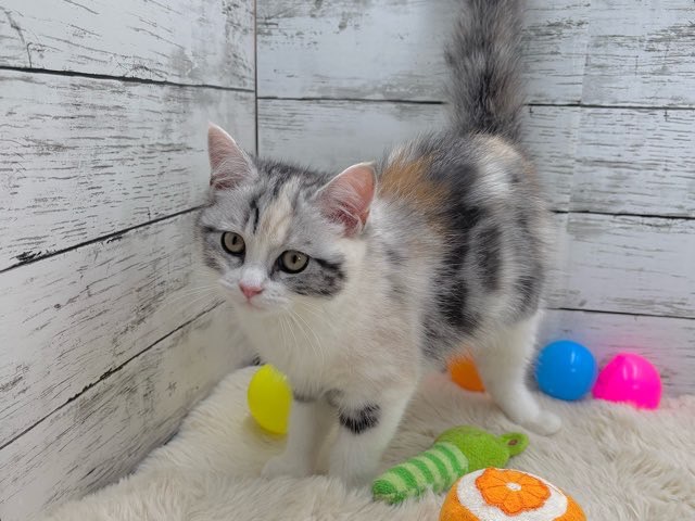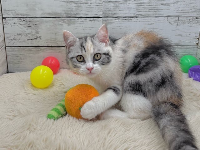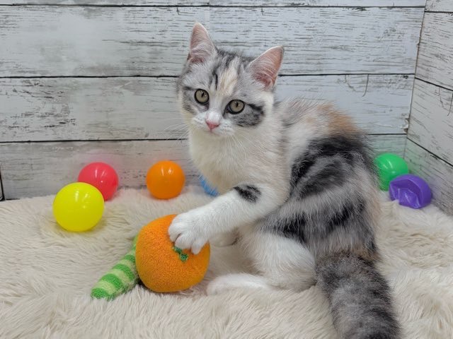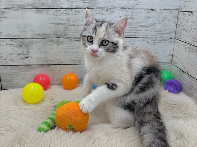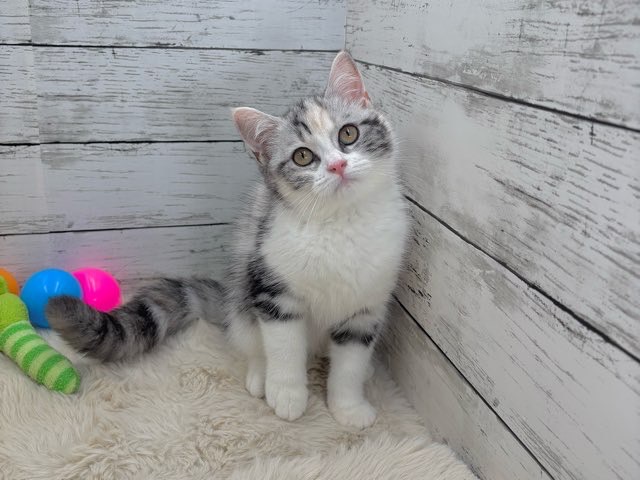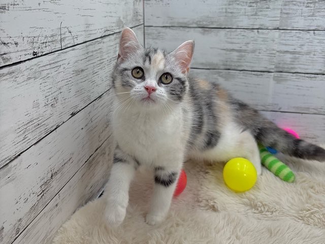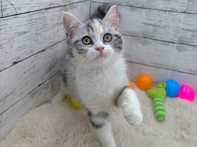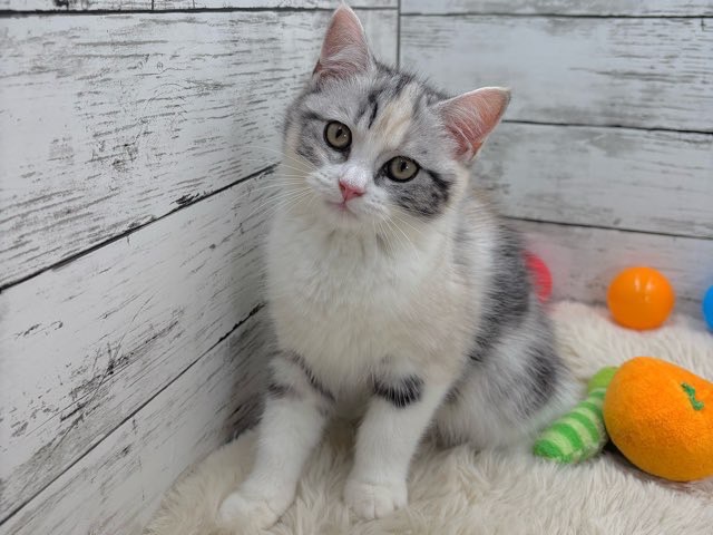 シルバーパッチドタビーとホワイトの美しい毛色が特徴的で、ふんわりとした雰囲気にうっとりしてしまいます💕
