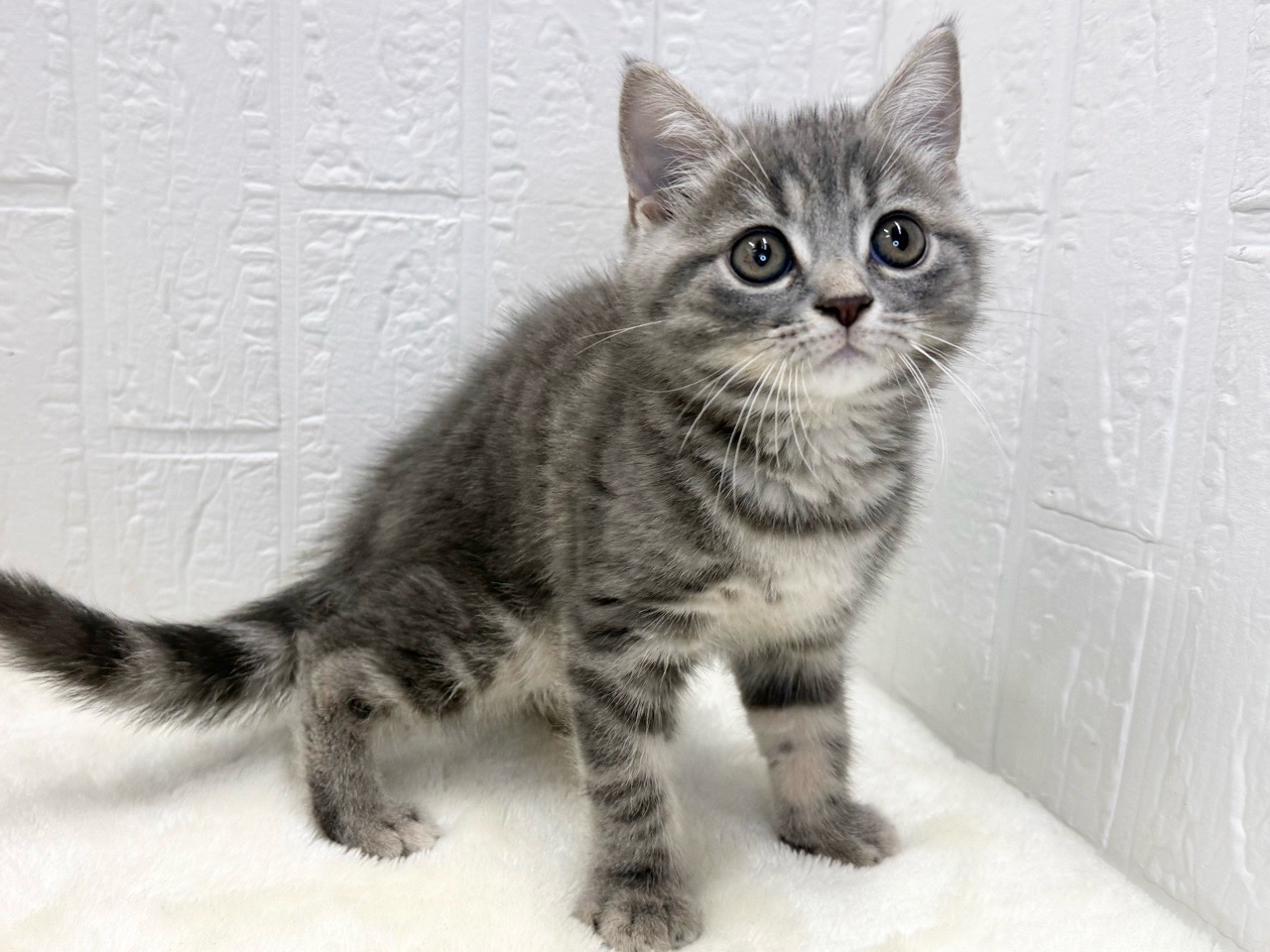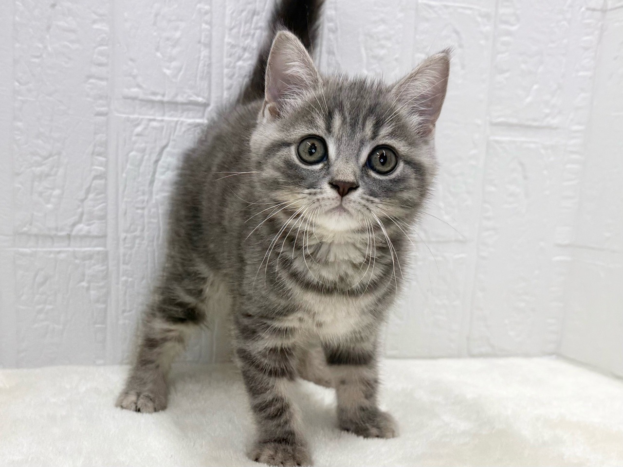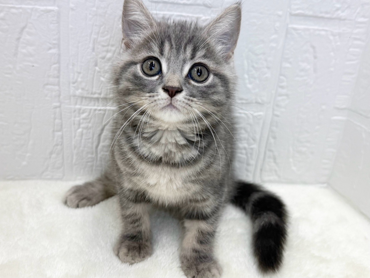 まんまるお顔にキラキラの瞳 ふわふわのシルバーカラーがとっても魅力的なマンチカンの男の子です😻