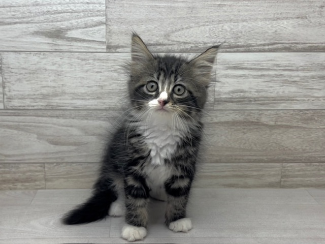 ふわふわの被毛に、落ち着いたブラウンタビーと清らかな白のコントラストが映える美しいサイベリアンです。大きな瞳とやわらかな表情からは、どこか知的で穏やかな雰囲気が感じられ、そばにいるだけで癒されそう。歩く姿にも優雅さがあり、まるで小さな貴族のような風格を持っています。家庭で愛情をたっぷり受ければ、きっと甘えん坊で信頼深いパートナーになってくれるはず。末永くともに笑顔を紡いでくれる、そんな運命の出会いをお届けします。