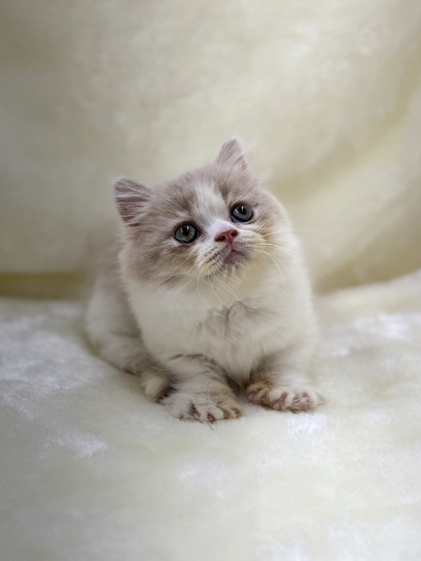 ふわふわの毛並みと、やさしいクリームタビー&ホワイトの色合いがとっても魅力的なミヌエットの男の子です。