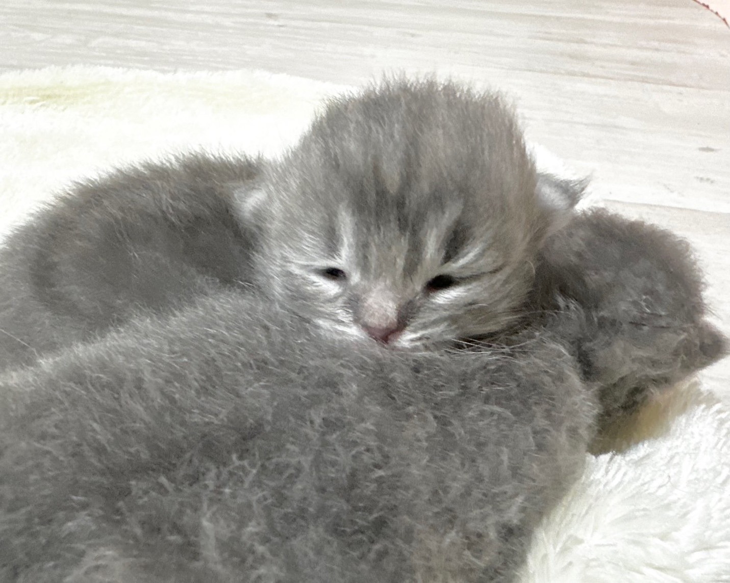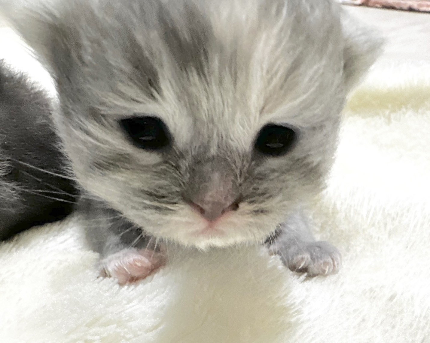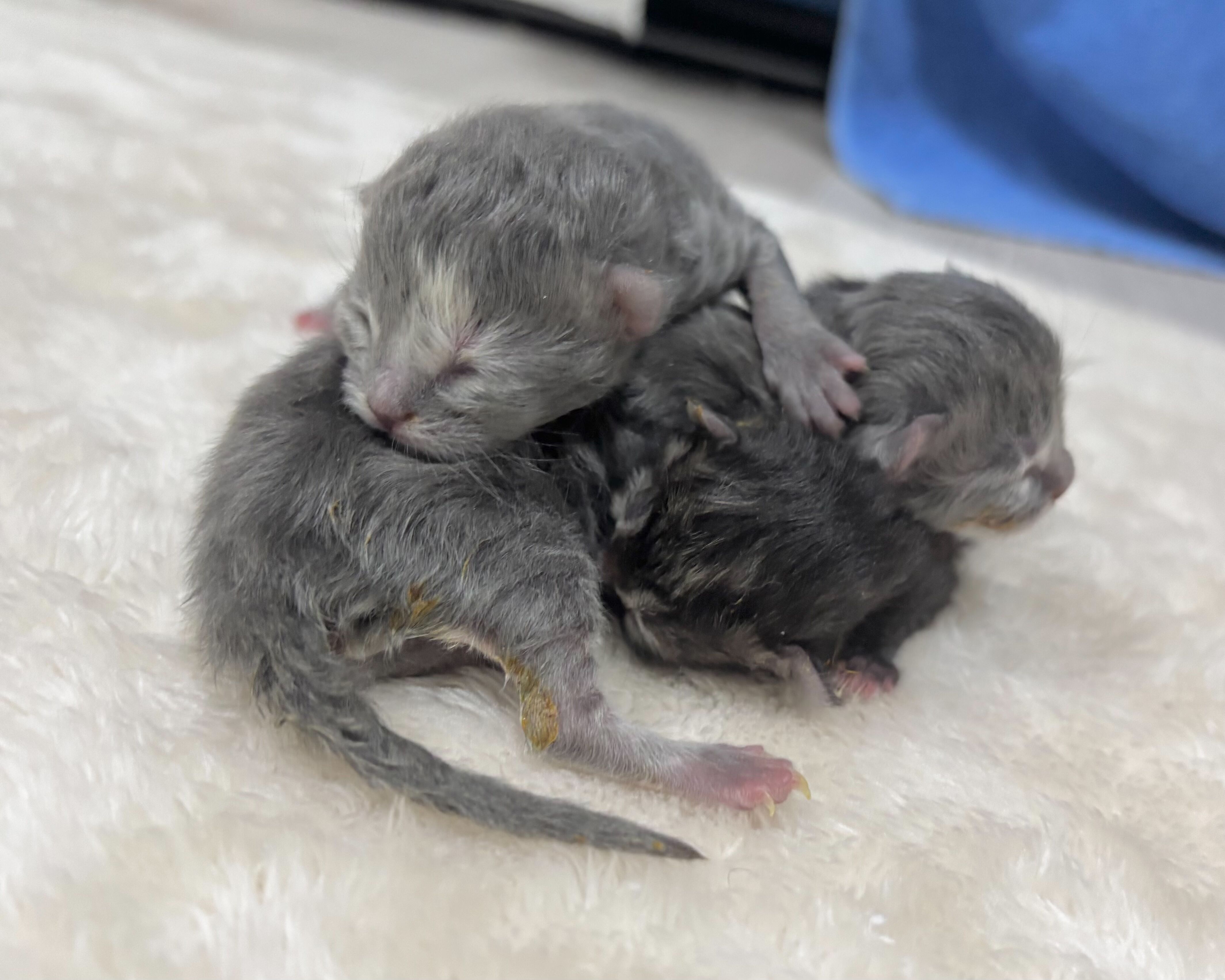 まだ生まれたばかりで体も小さく、現在は母猫のそばで静かに過ごしています。