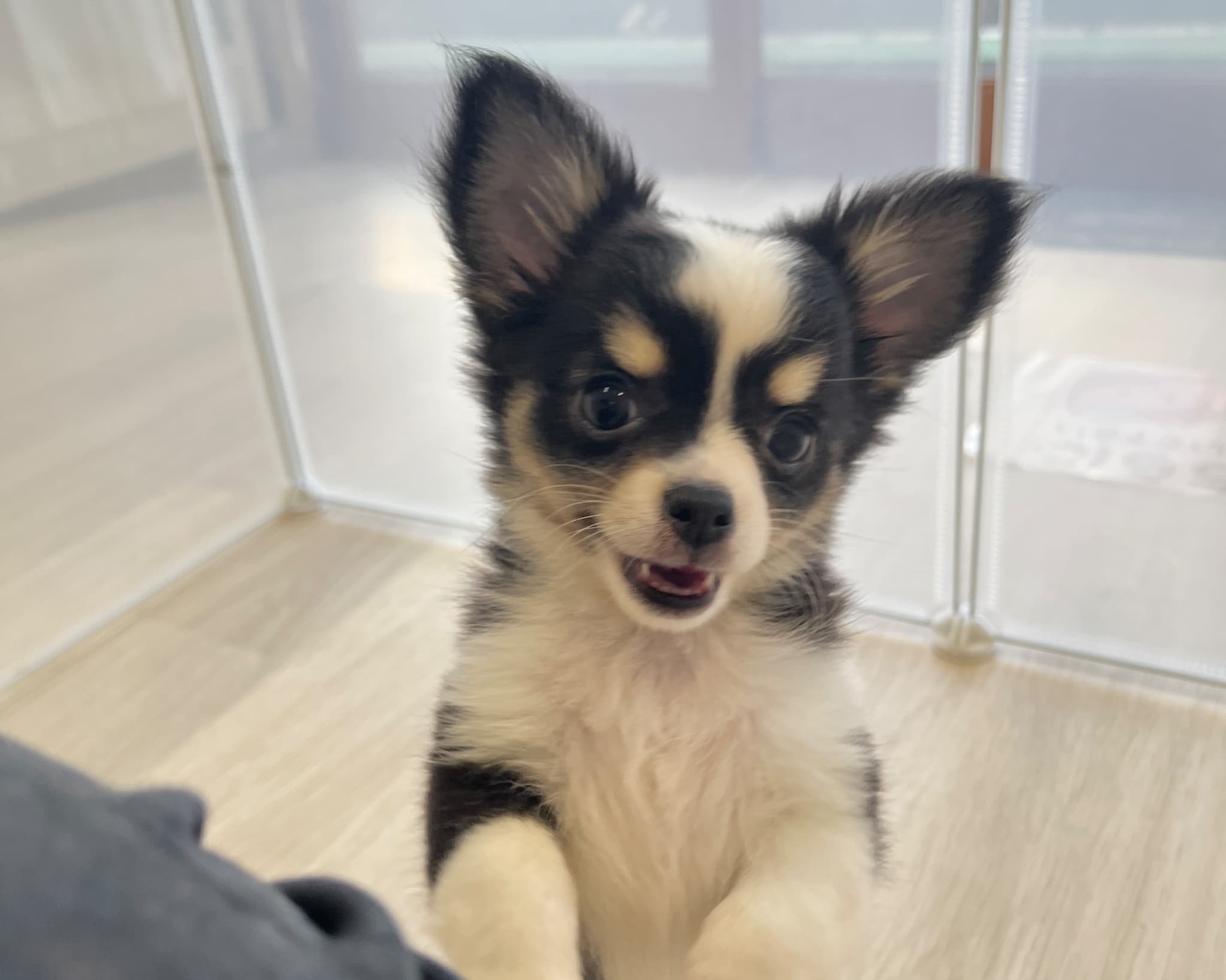 お顔の白いラインと、黒いお耳のふわふわ感がチャームポイントで、実物は写真以上にうるうるの瞳で見つめてくれます😊