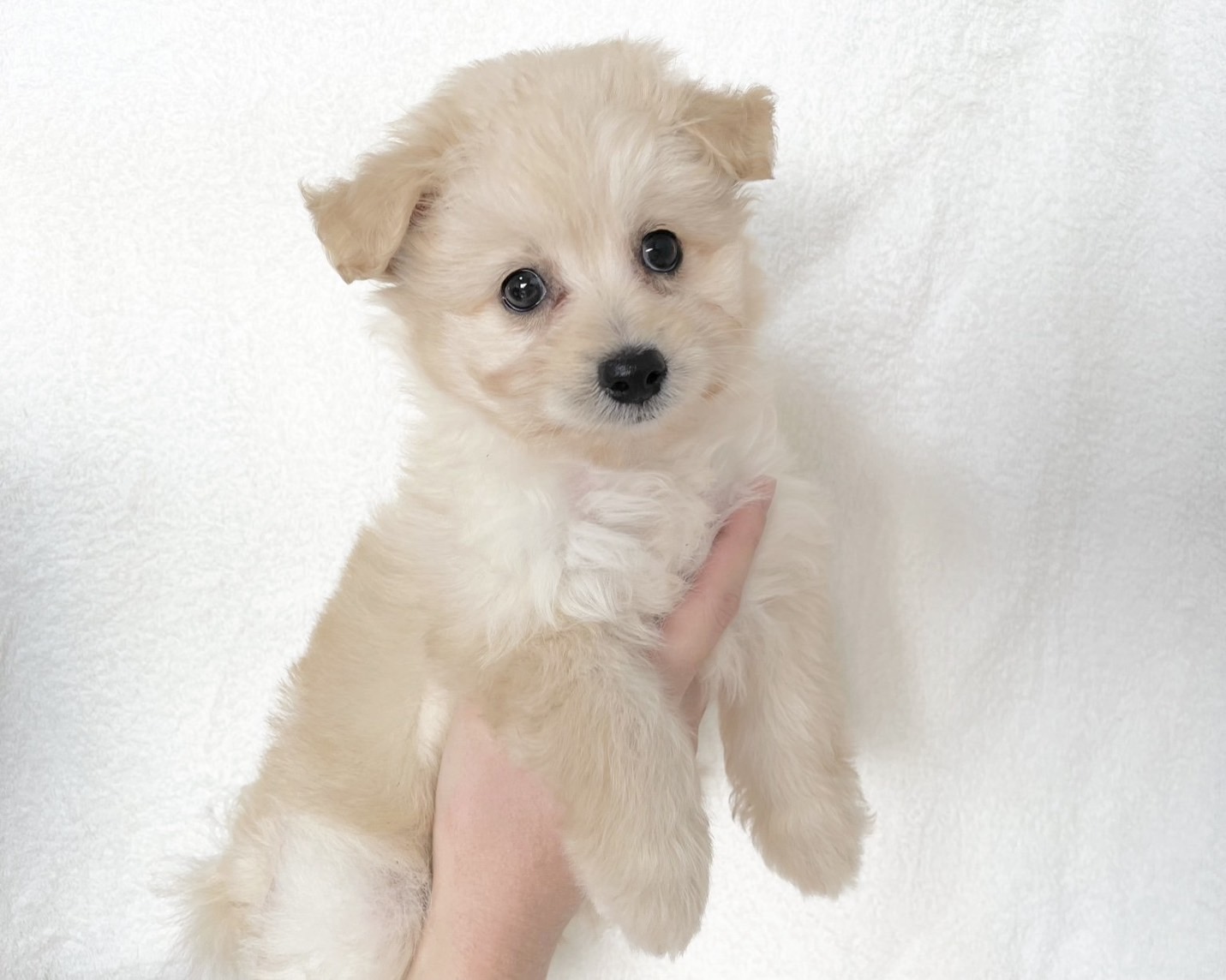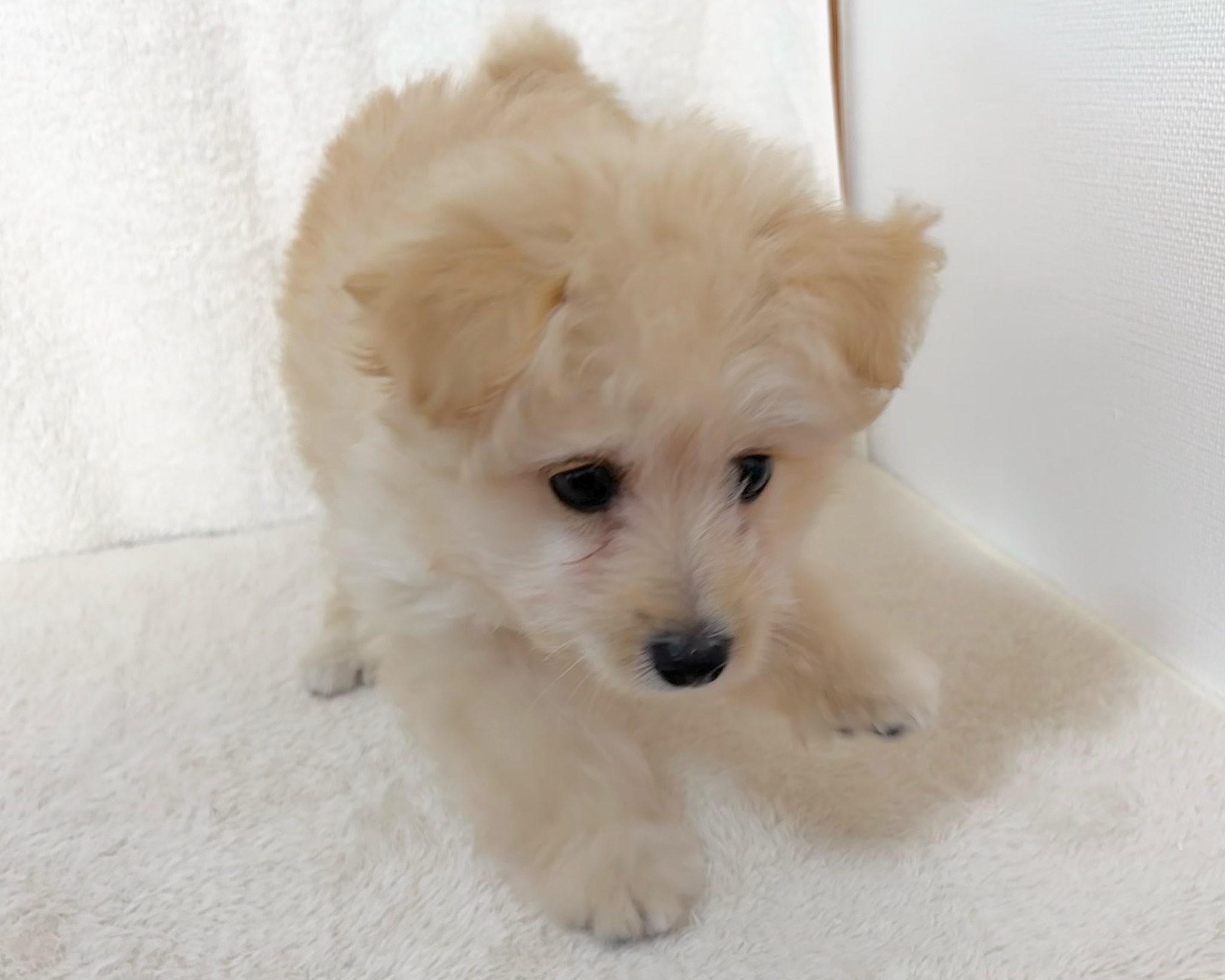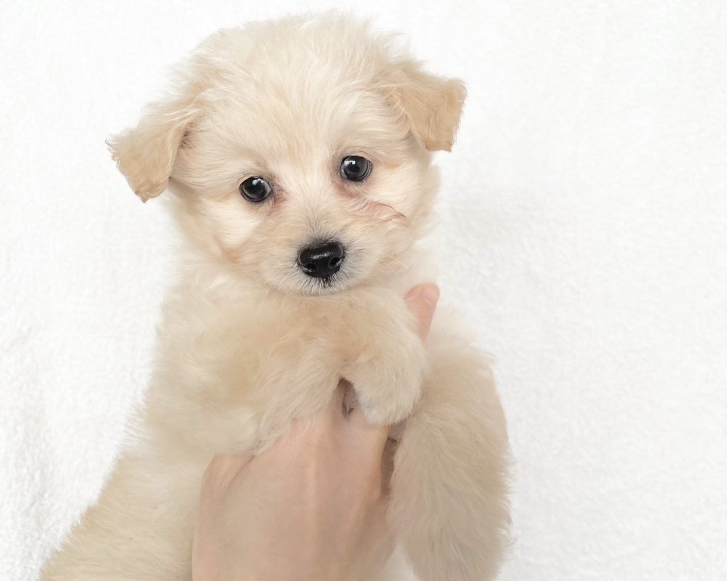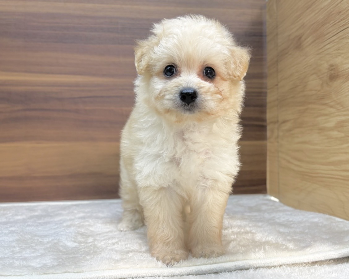 クリームのふわふわコートがとっても可愛い、小柄なポメプーの赤ちゃんです🐶💕