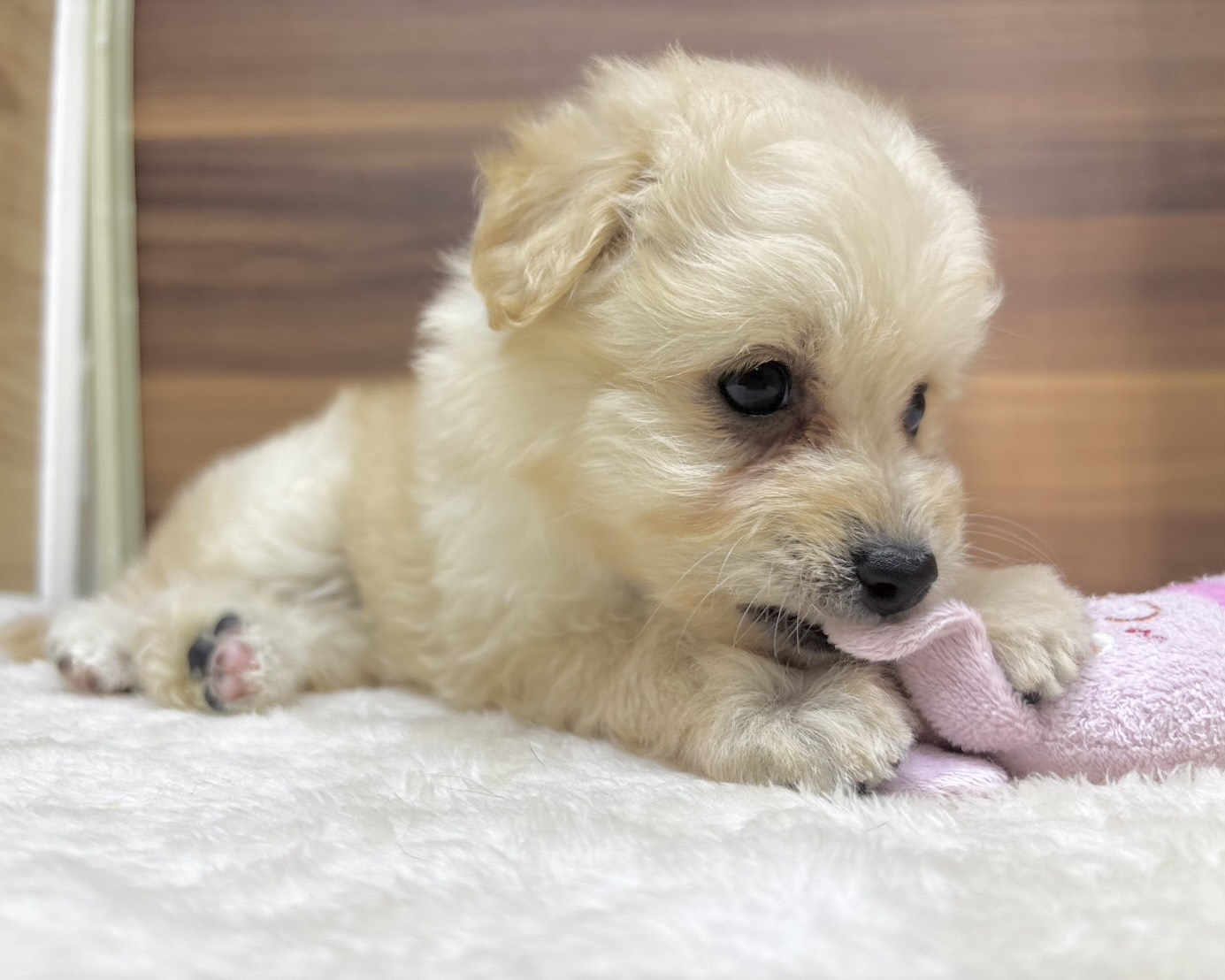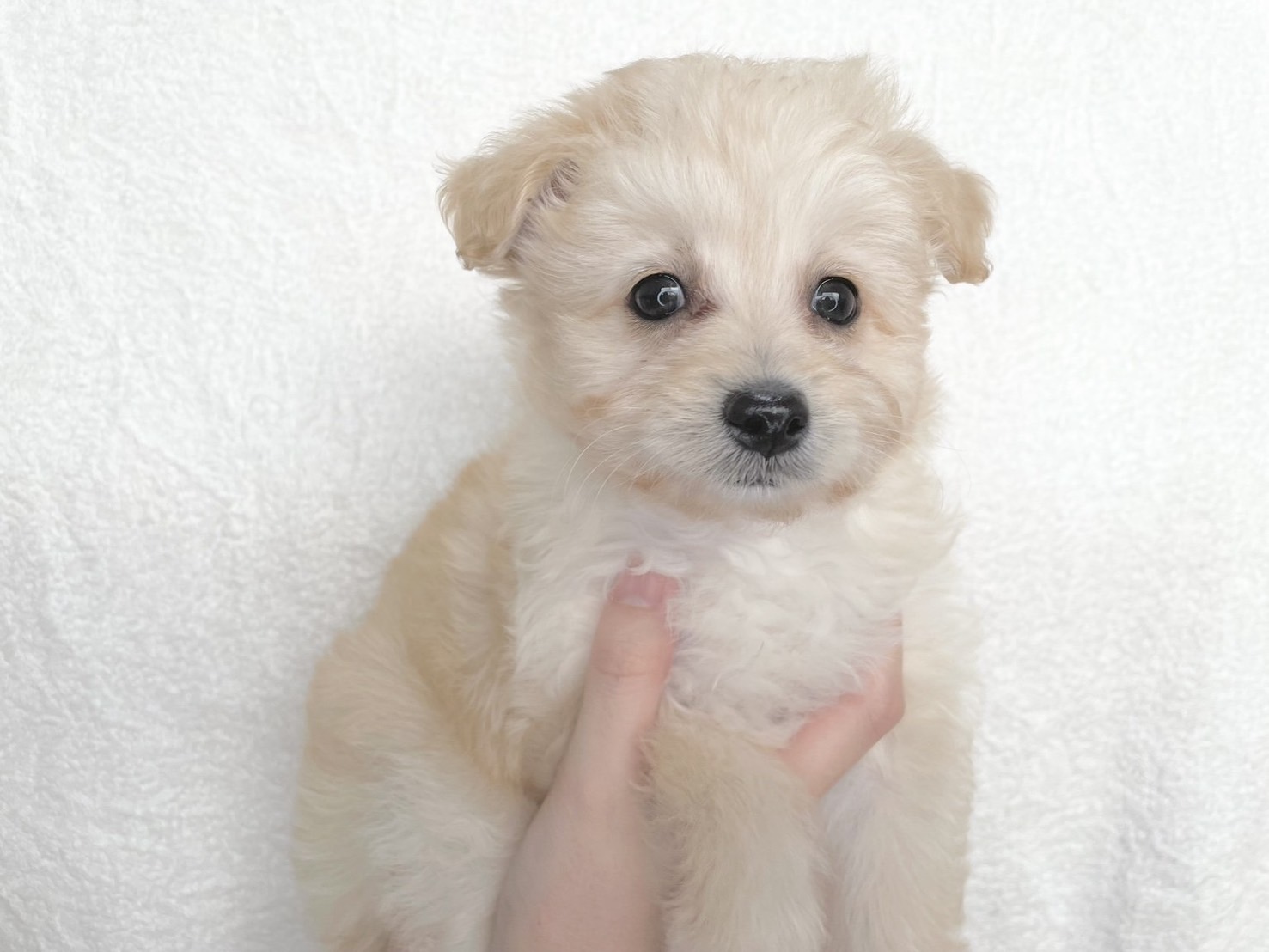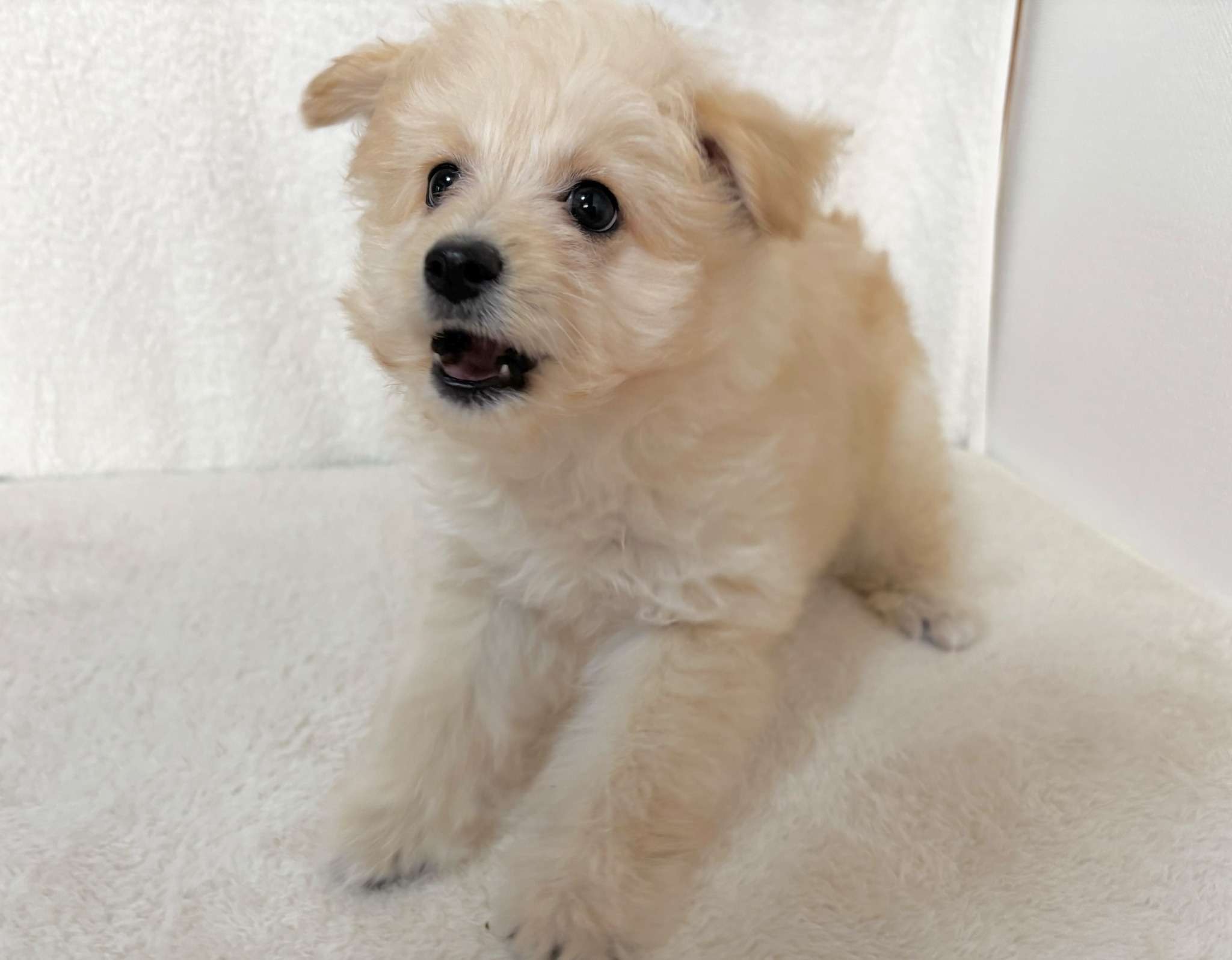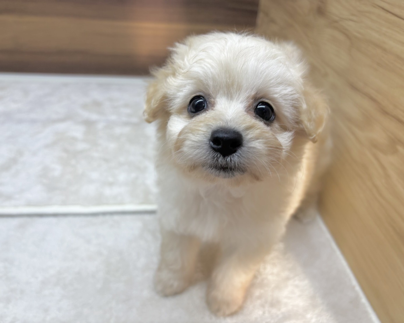 クリームのふわふわコートがとっても可愛い、小柄なポメプーの赤ちゃんです🐶💕