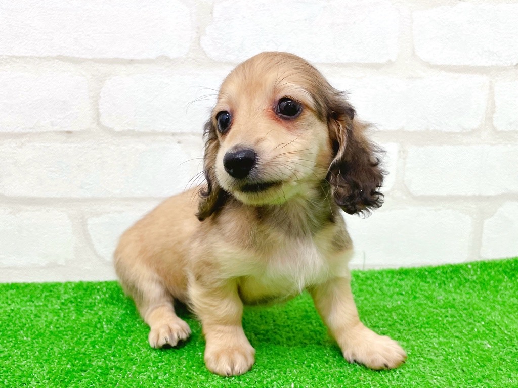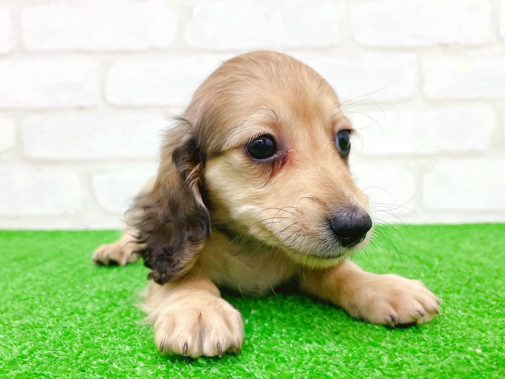 つぶらな瞳とふわっと広がる長いお耳が魅力的な、ミニチュアダックスロングの女の子です🐶✨