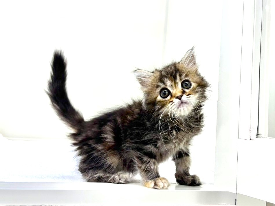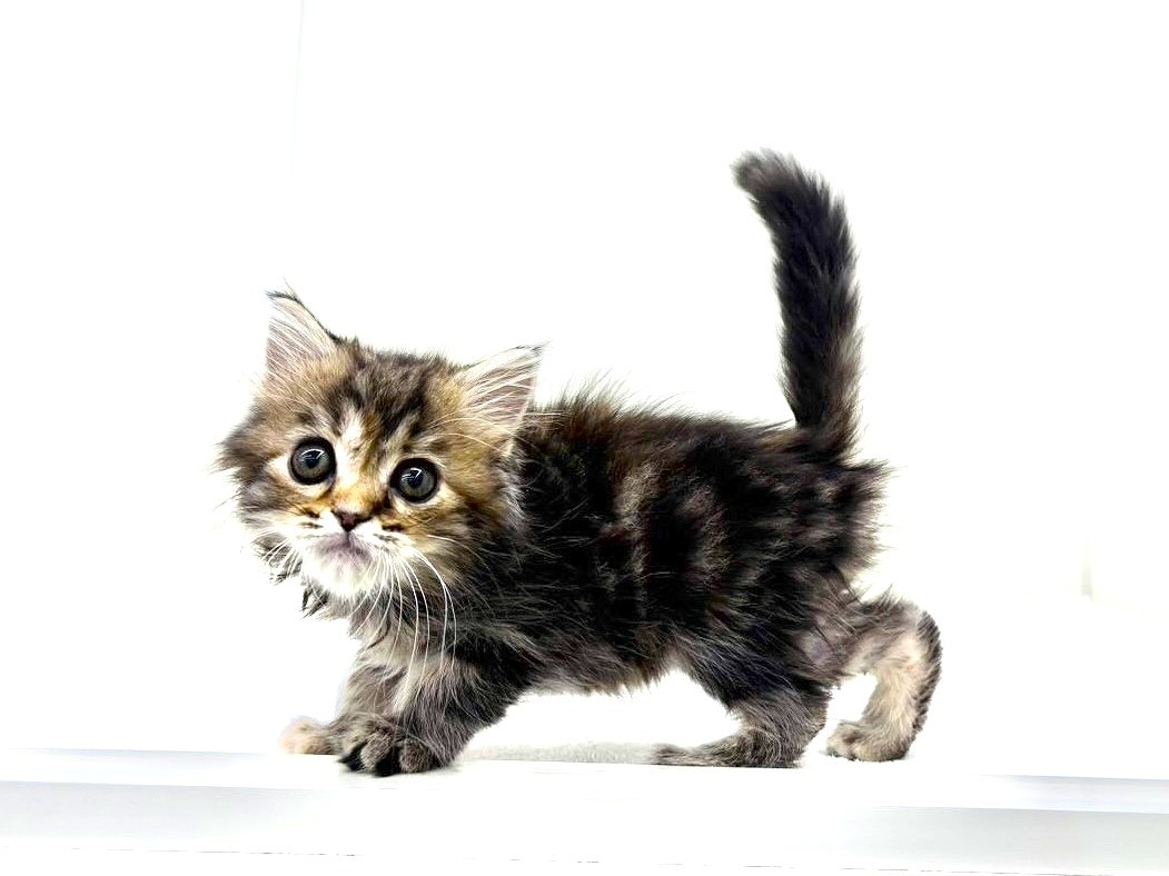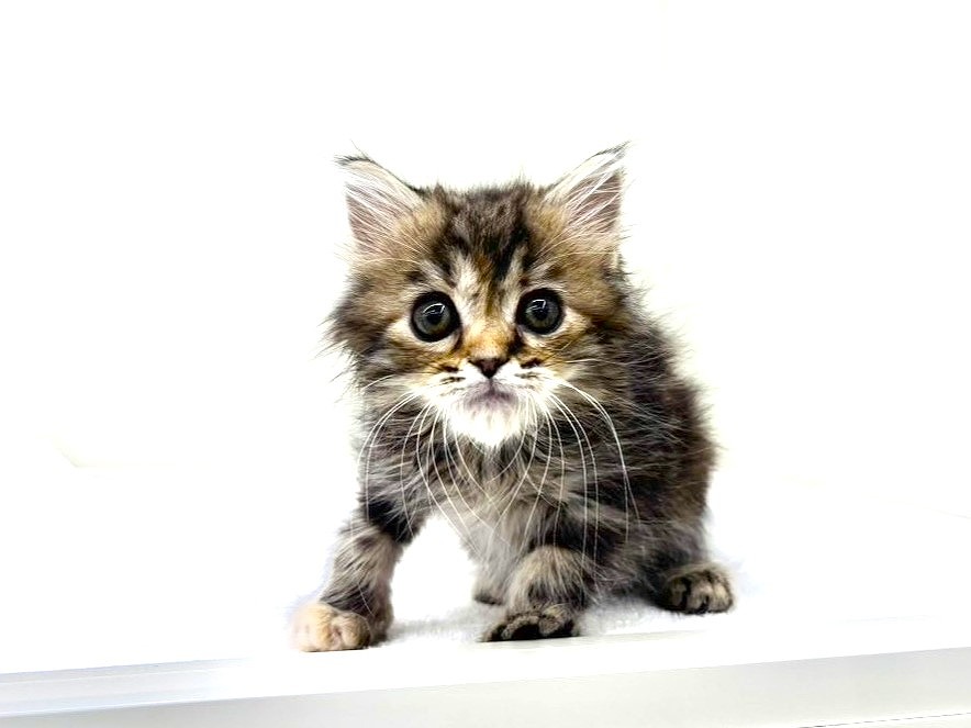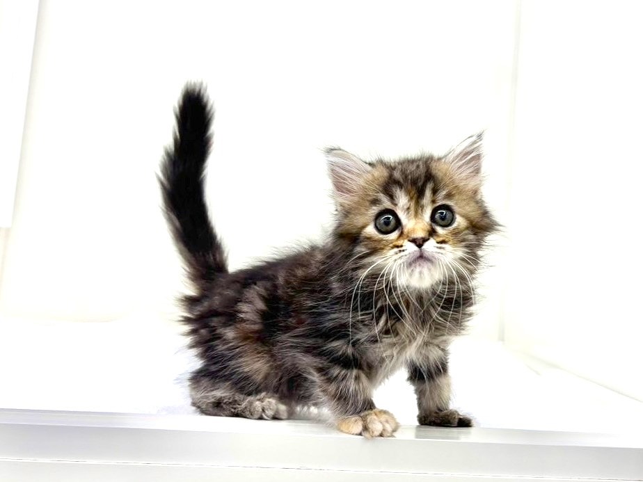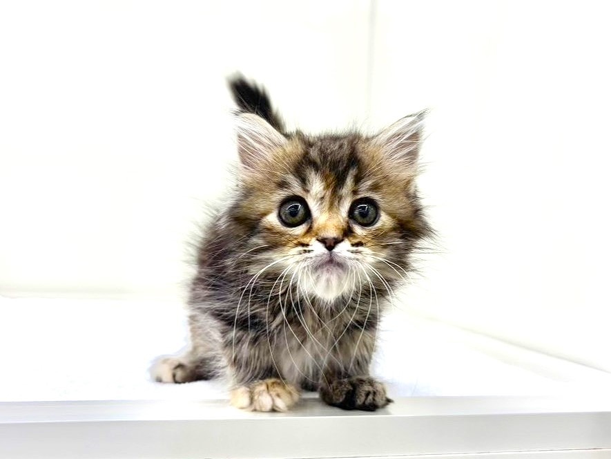 ブラウンパッチドタビーの美しいカラーがよく映えていて、小さな体なのに存在感はばつぐん!