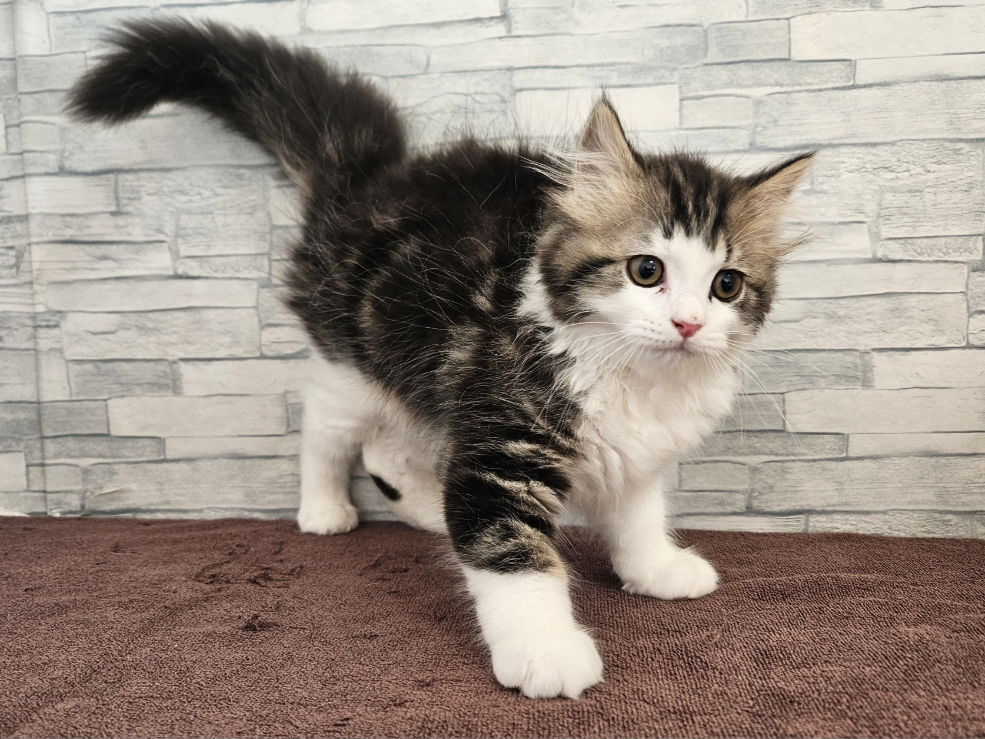 ブラウンタビー&ホワイトの模様が絶妙で、思わず見惚れてしまうチャームポイントになっています✨