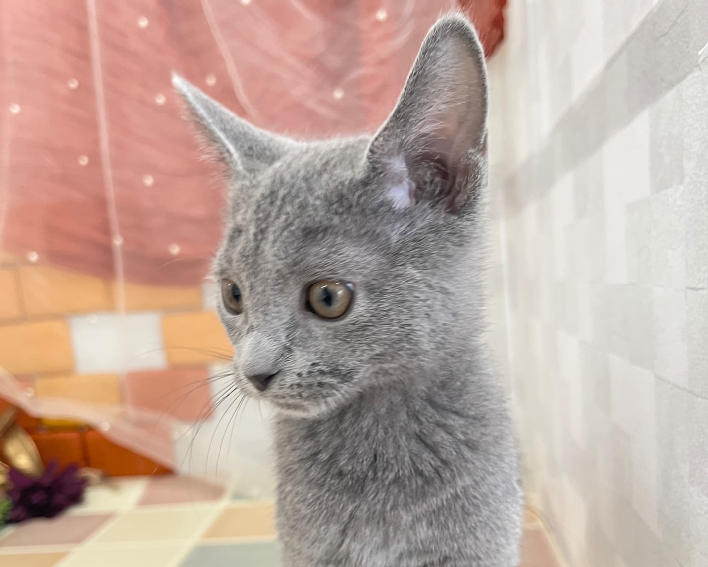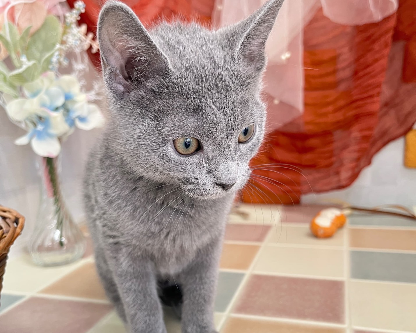 つややかなシルバーグレーの被毛が美しいロシアンブルーの女の子🐈✨