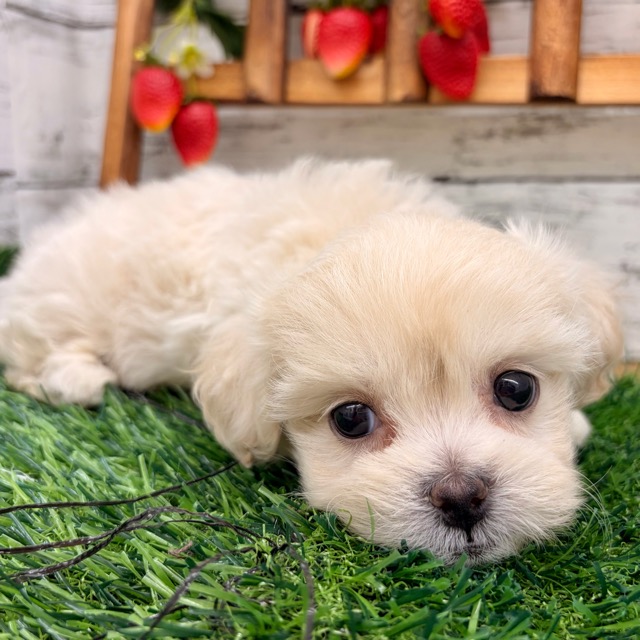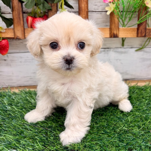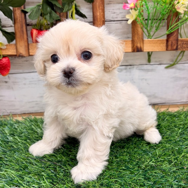 お顔立ちはペキニーズの愛嬌とプードルのあどけなさが絶妙に混ざり合っていて、見れば見るほど虜になってしまうタイプです🥰