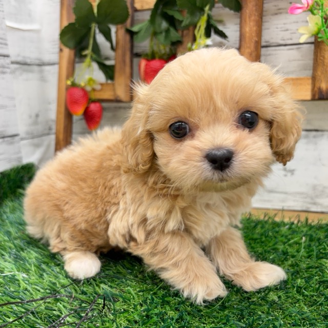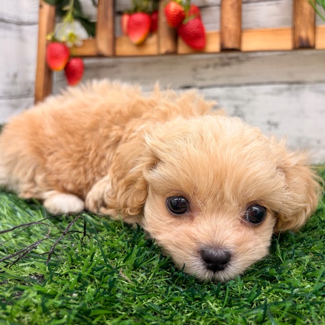 淡いアプリコットカラーのふわふわ被毛は、まるで小さなテディベア。