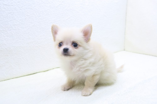 ポメラニアンらしいふわふわ感と、チワワらしいキュートなお顔立ちが絶妙に混ざり、