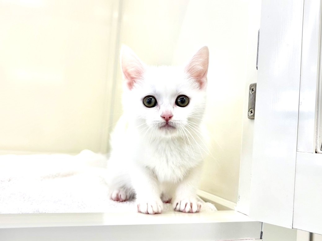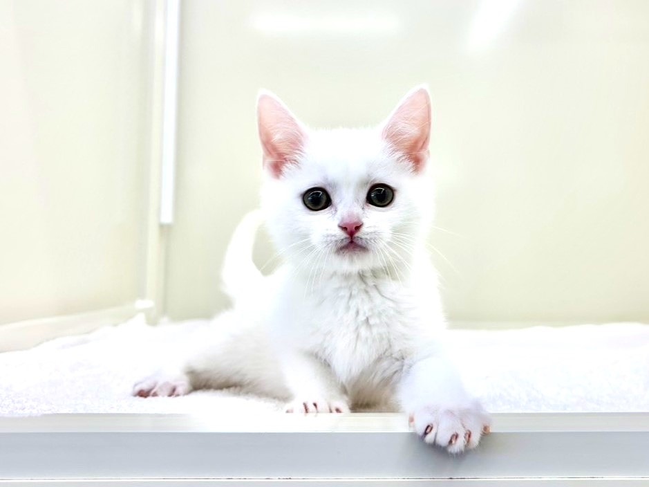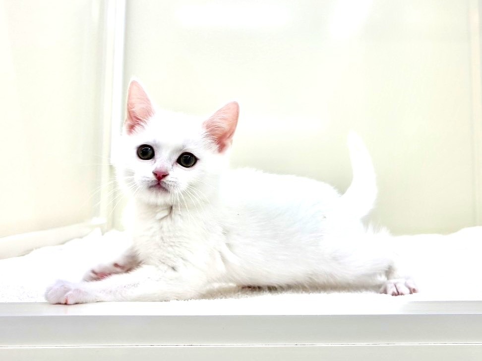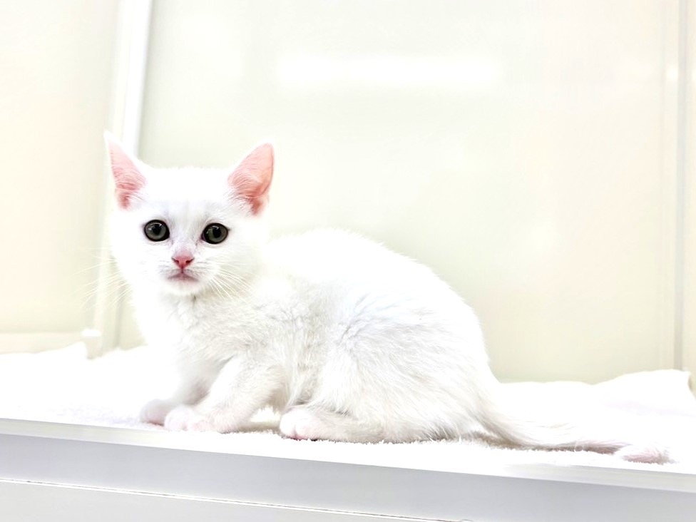 全身まっしろの被毛にその瞳が映えて、どこか神秘的な雰囲気すら感じさせる子です♪